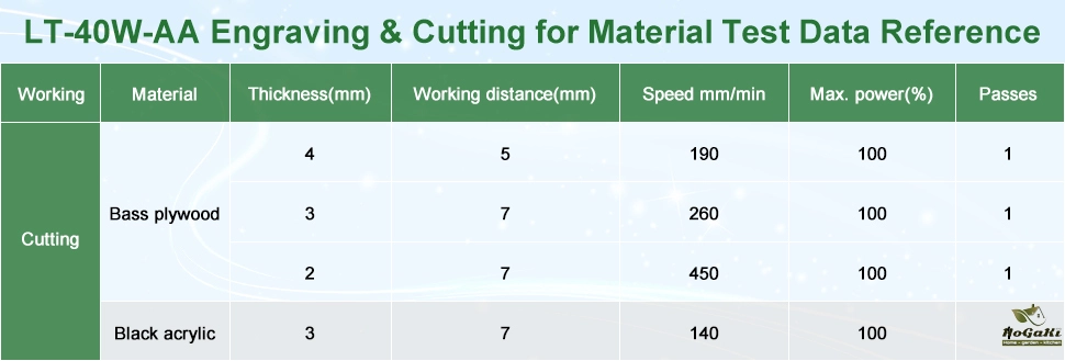 a. The cutting focal length is 50mm, it can cut through 1-2mm basswood plywood at one time
