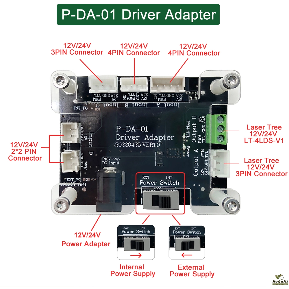 In order to improve the compatiblity to different laser engraver machine, K20 provide a solution by adapter board for electric compatibiliy, and sliding plate with multi holes for installation compatibility.
