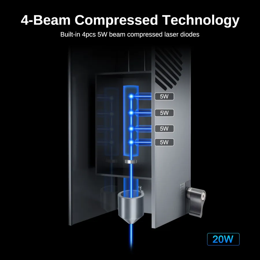 4-Beam compressed technology (built-in 4pcs 5W beam compressed laser diodes)
