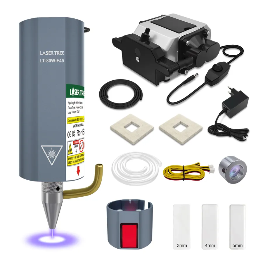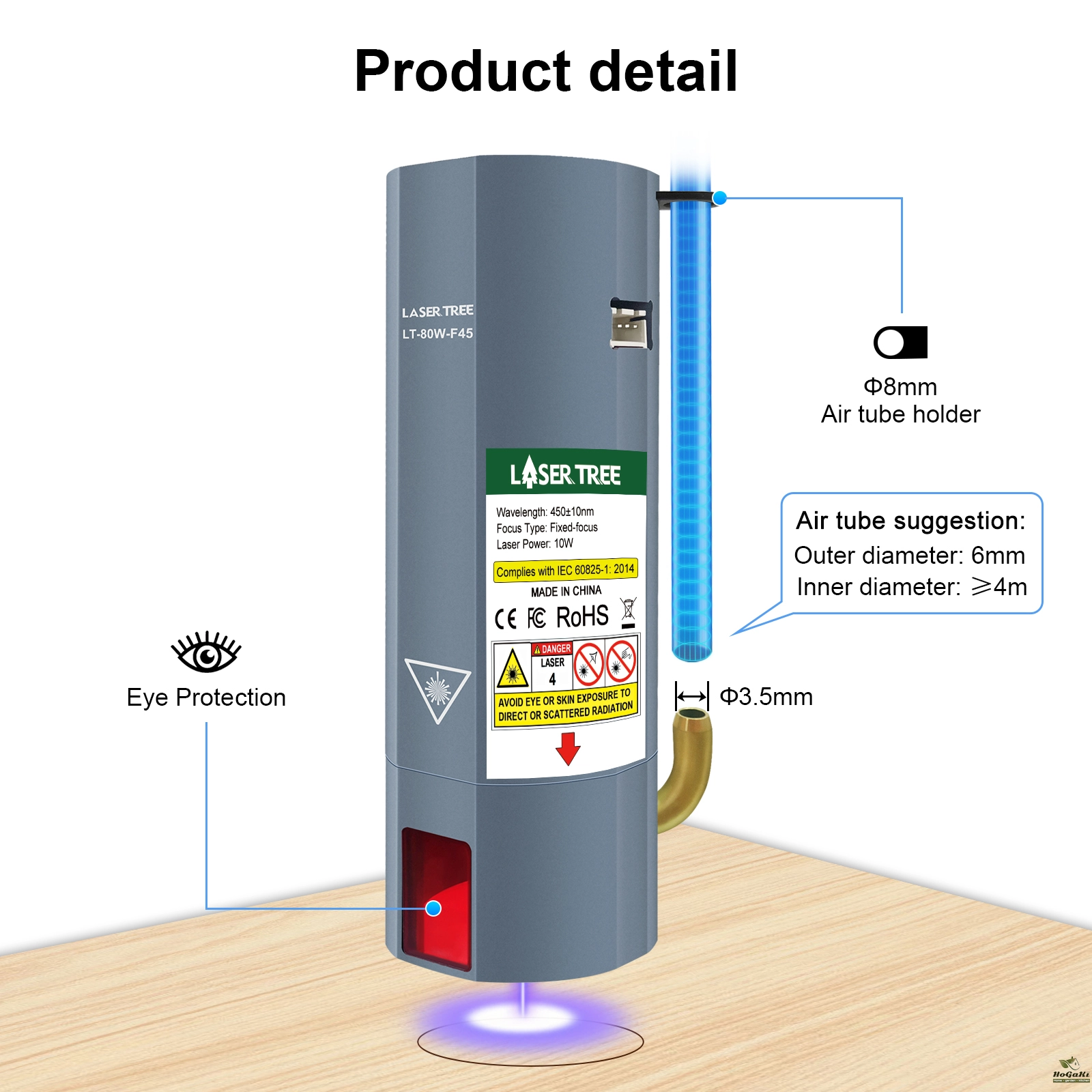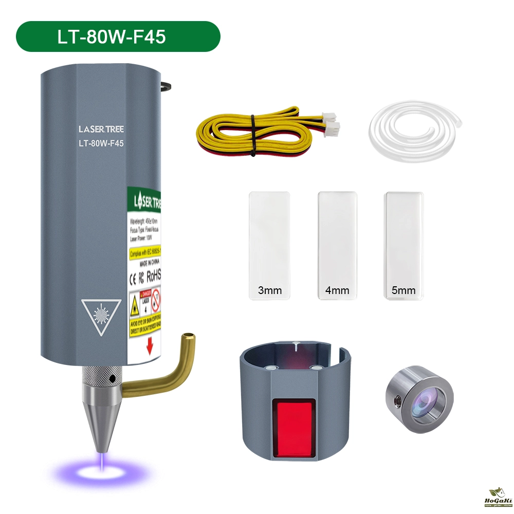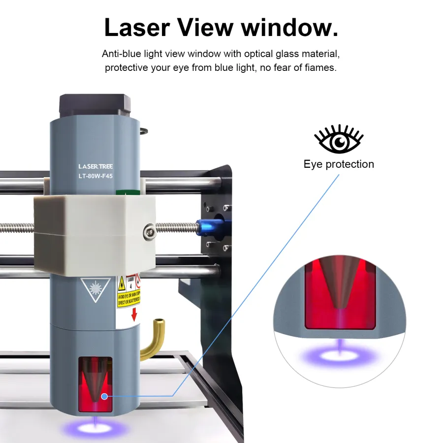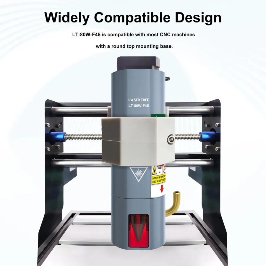 LT-80W-F45 is a laser engraving and cutting module specially designed for CNC 3018 machines. It is compatible with most CNC machines with a round top mounting base.