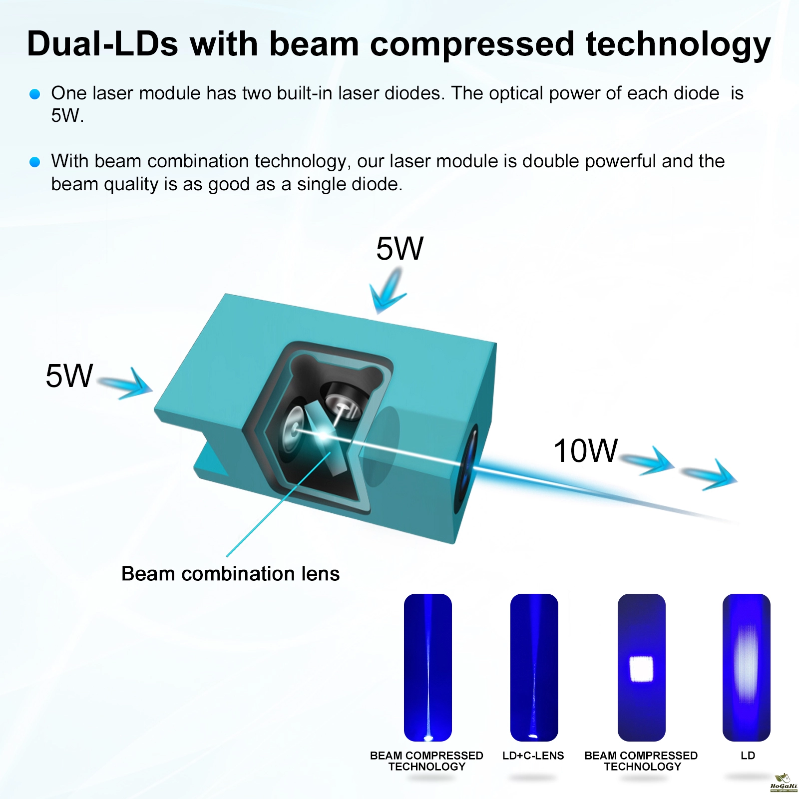 With beam combination technology, our laser module is double powerful and the beam quality is as good as a single diode.