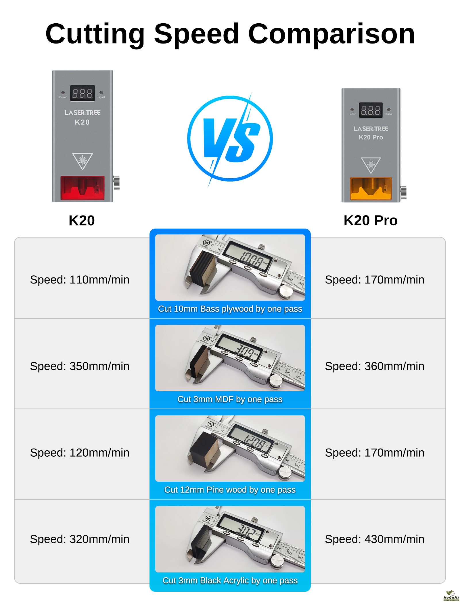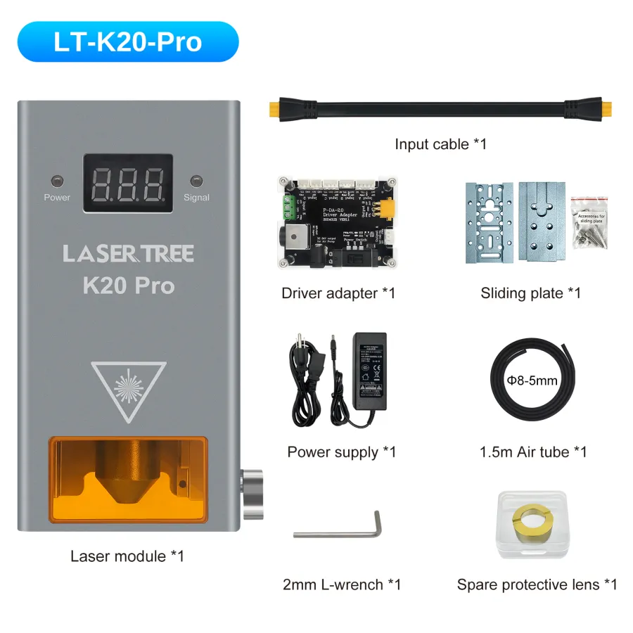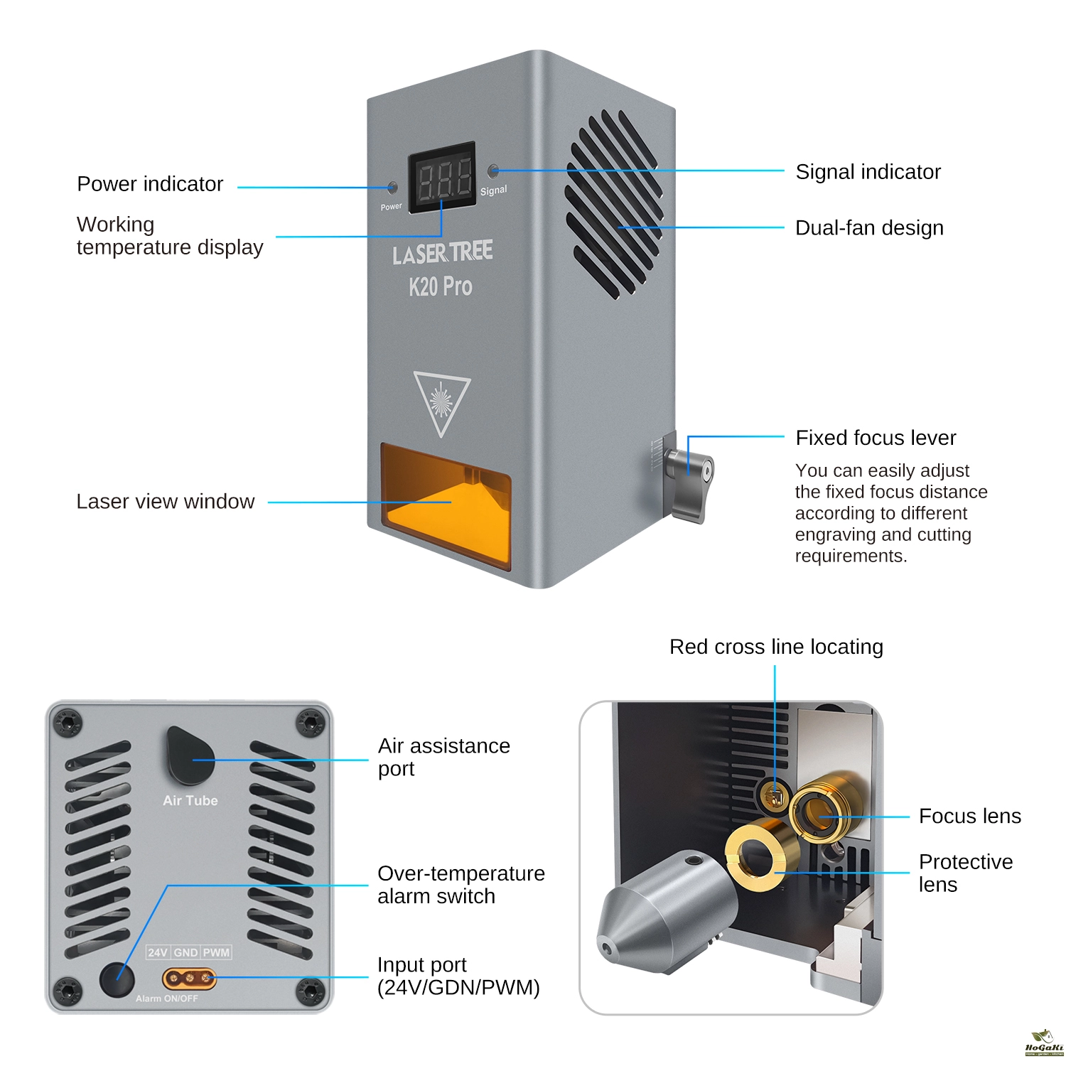 LaserTree K20 is a true 19-21W output optical power laser engraving and cutting module. It uses beam compressed technology to combine 4pcs 5W laser diodes into a powerful laser beam with 20W laser power.