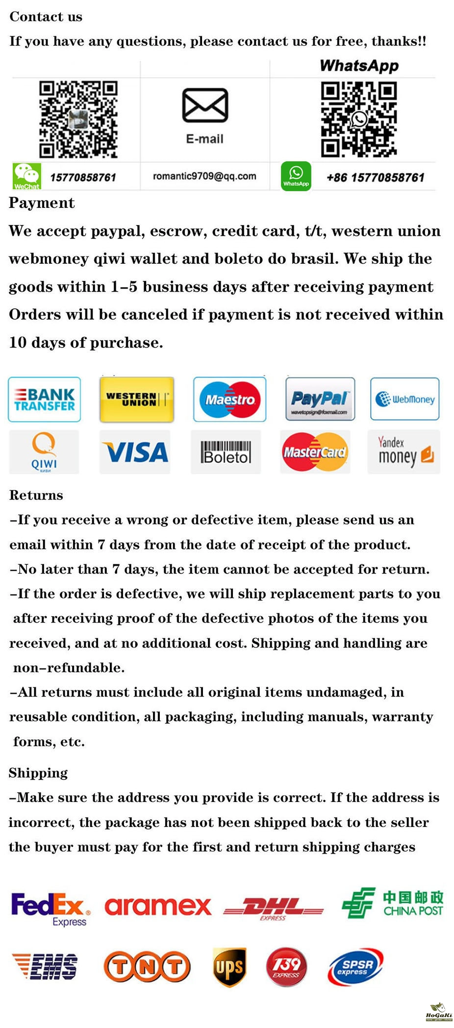 If you have any other questions, please contact us and we will do our best to help you out.