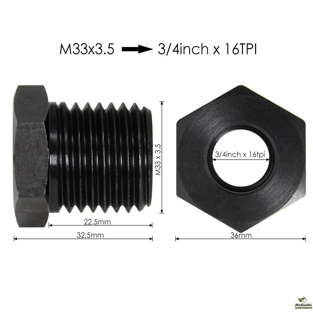 - M33x3.5mm: The diameter of spindle thread is about 32.5mm, The pitch is 3.5mm.