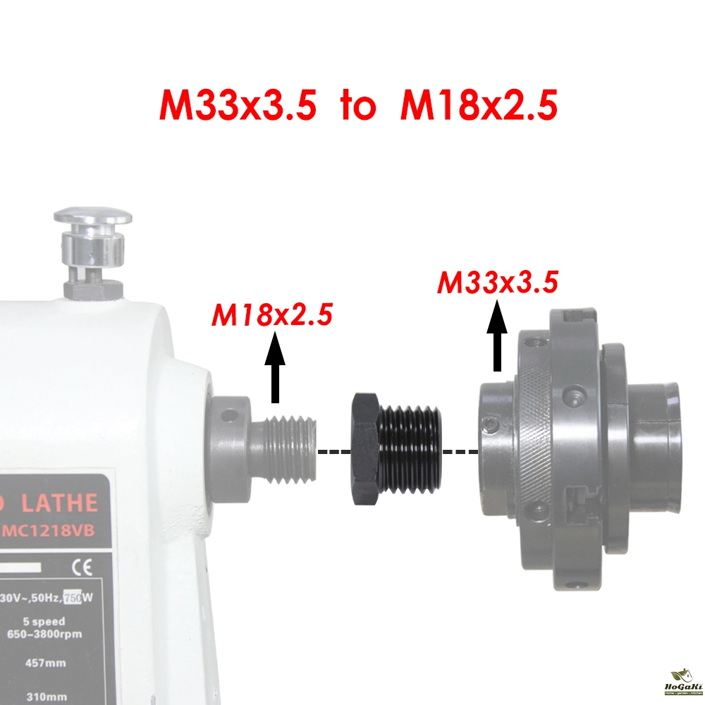 Lathe Headstock Spindle Adapter Thread 1" x 8TPI M33 x3.5mm M18 -2.5mm Chuck Insert Wood Turning Woodworking Tool Accessories