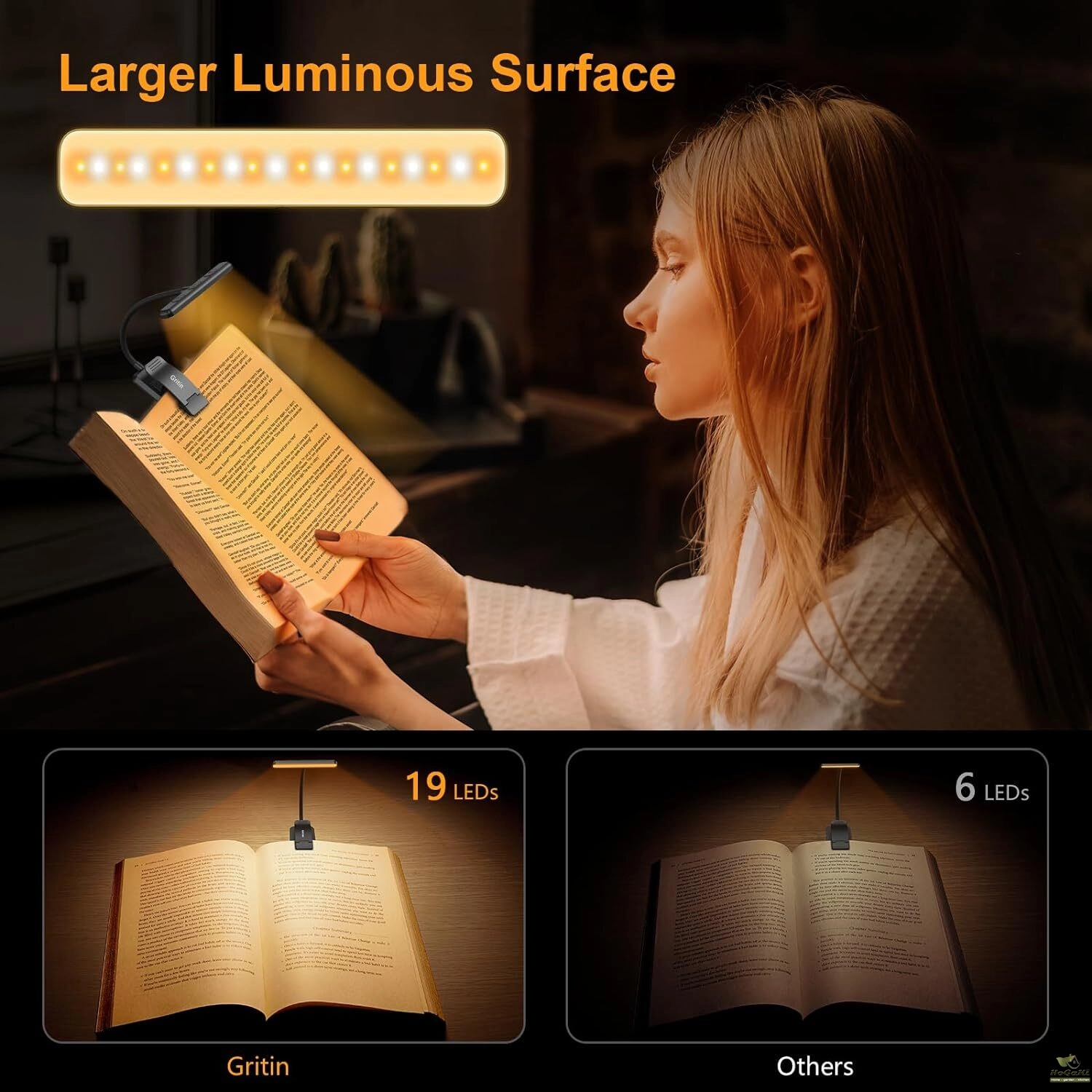 Reading Light Book Lights for Reading in Bed Rechargeable Reading Lamp with 3 Color Mode 5 Brightness for Kids Nighttime Readers
