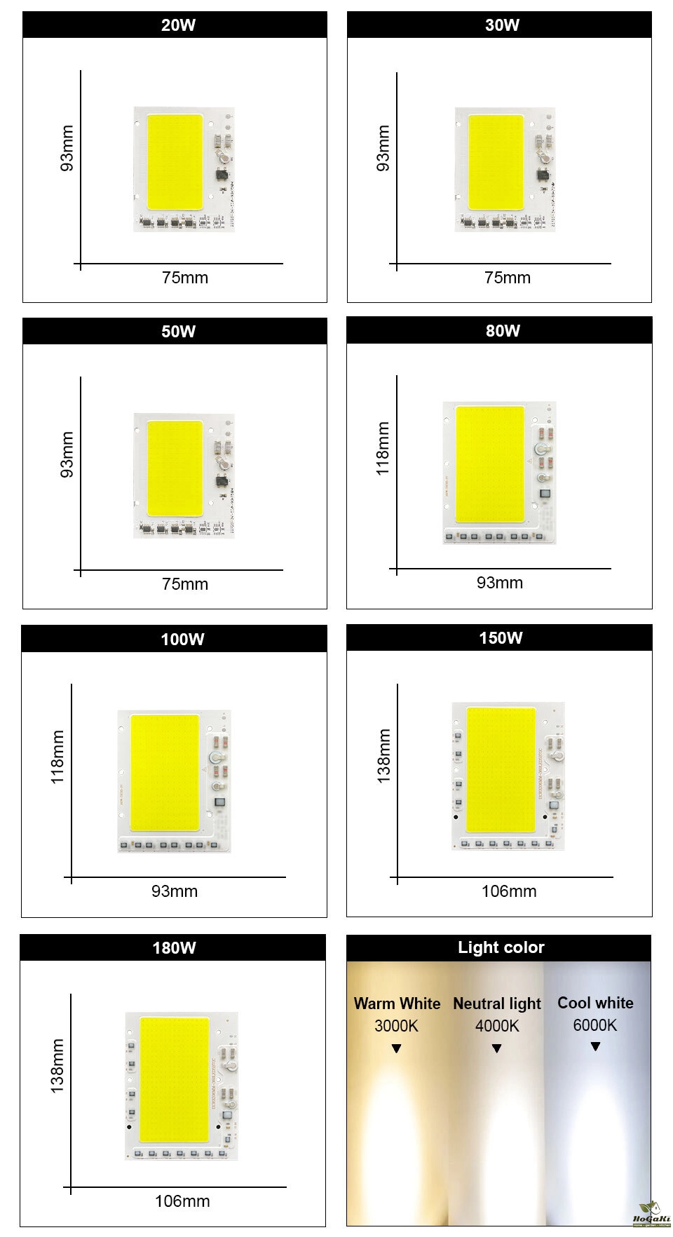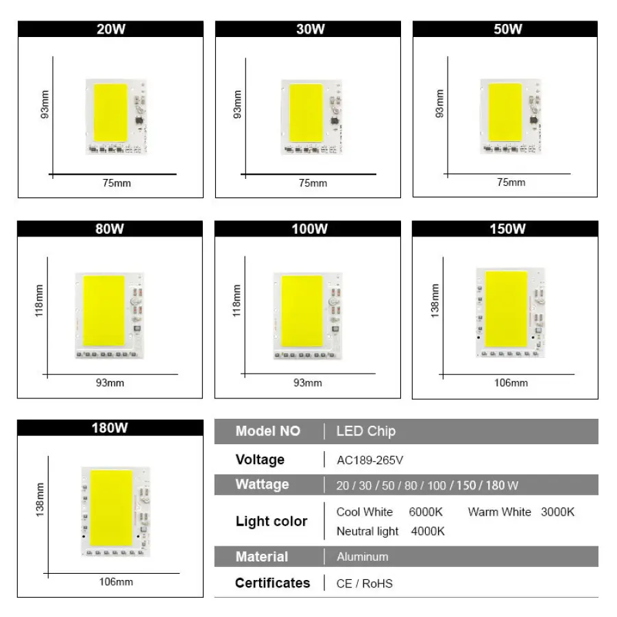 Watt: 20w 30w 50w 80W 100W 150W 180W