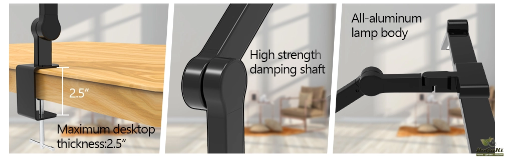 our swing arms led desk light features 7 strongly damped joints with 3 ultra bright light bars design for freely vertical adjustment and horizontal adjustment. You can rotate the bilateral light bars vertically to change the illumination angle. Turn them up to expand the lighting coverage to illuminates your entire desk or turn them down to create a super bright lighting area for sewing crafting. You can also rotate the base to adjust the light direction and position.