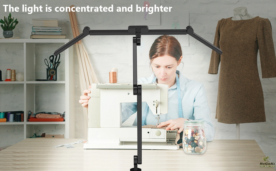When you need to focus light on sewing, drawing or handcrafting, you can rotate the bilateral light bars down to create a super bright lighting area. Or you can just rotate one light bar down for eliminating shadows.