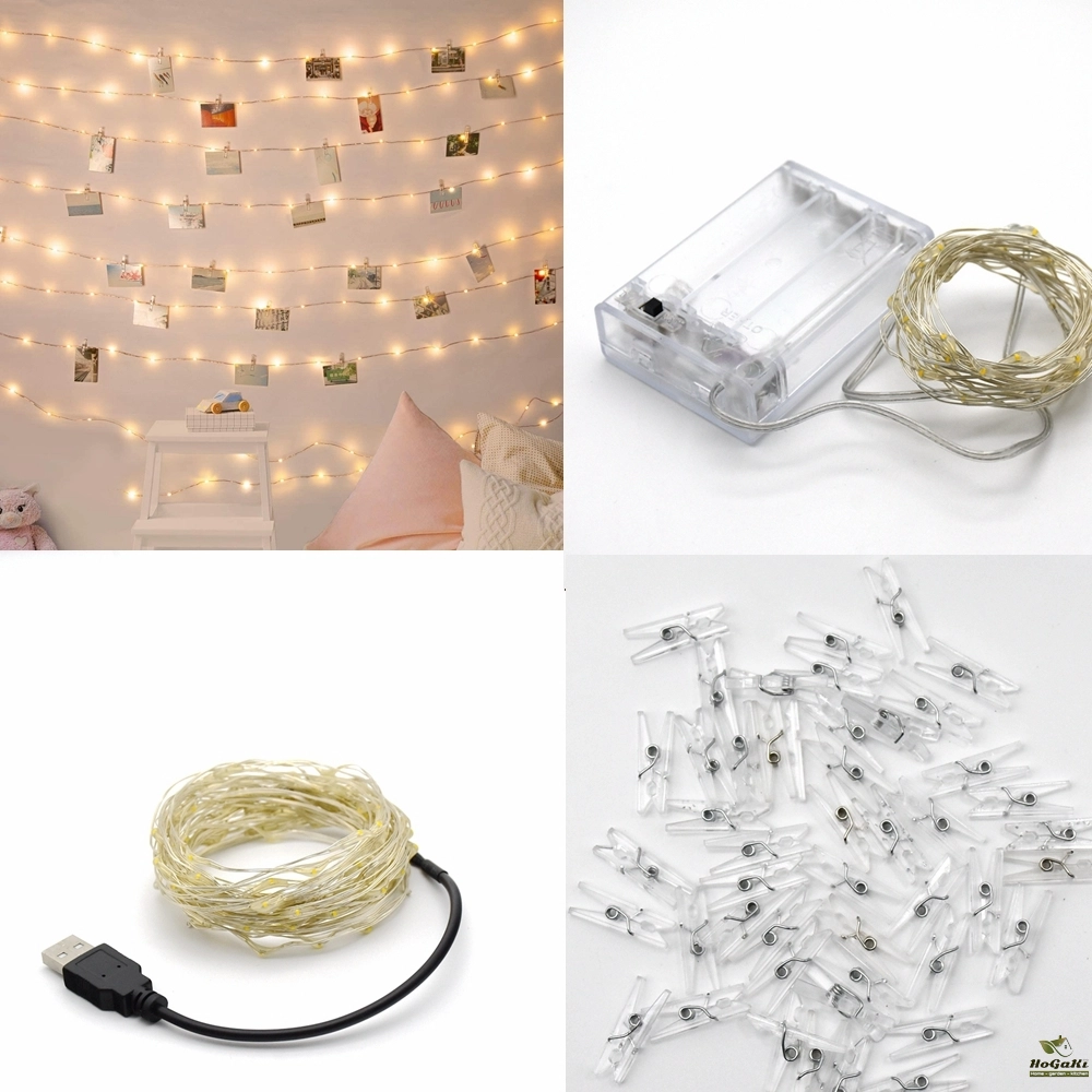 LED Fairy Lights Photo Clip String Lights, USB/AA Battery Powered String Lights, Bedroom, Christmas, Party, Wedding, Decoration