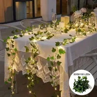 1pc 20 LED Green Leaf Fake Plants String Light Battery Powered Waterproof String Light For Wall House Room Office Birthday Decor