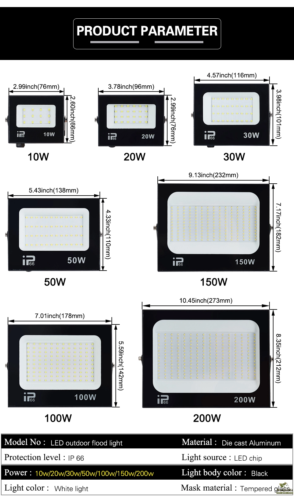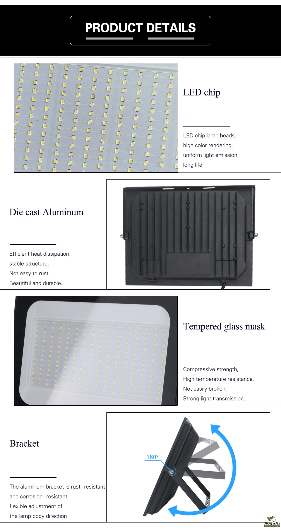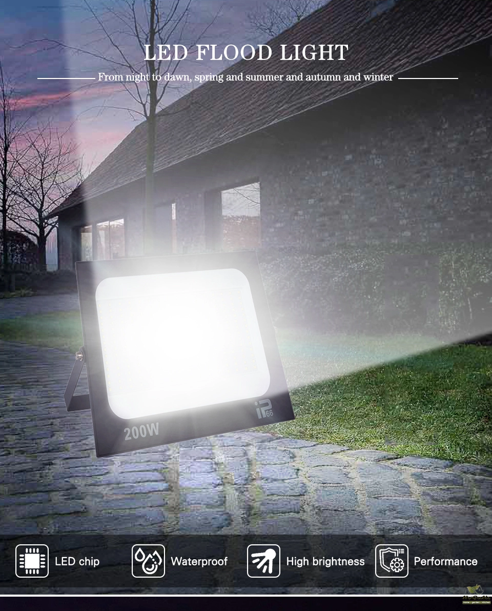 LED Flood Light Spotlight AC220V 100W 200W IP66 Waterproof LED Black Shell Garden Street Gate Wall Floodlights