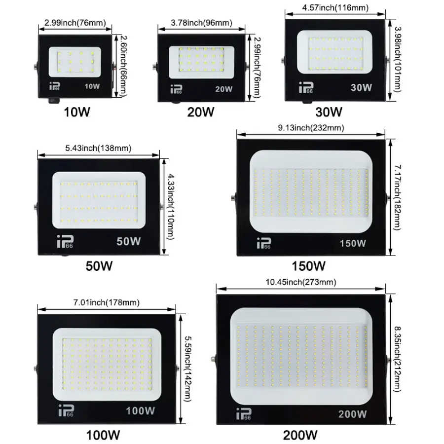 Lumens: (10W)900LM/ (20W)1800LM/ (30W)2700LM/ (50W)4500LM/ (100W)9000LM/ (150W)13500LM/ (200W)18000LM