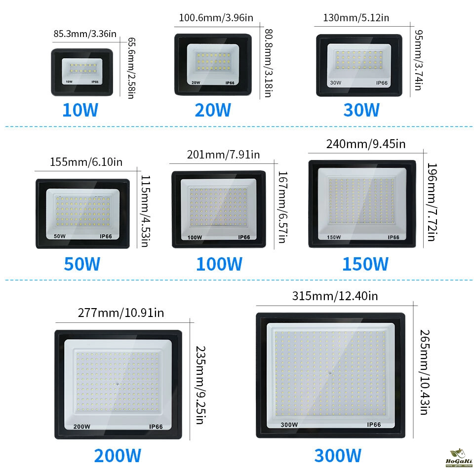 LED Flood Light Spotlight AC220V 10-300W IP66 Waterproof Black Shell Garden Street Gate Wall Floodlights