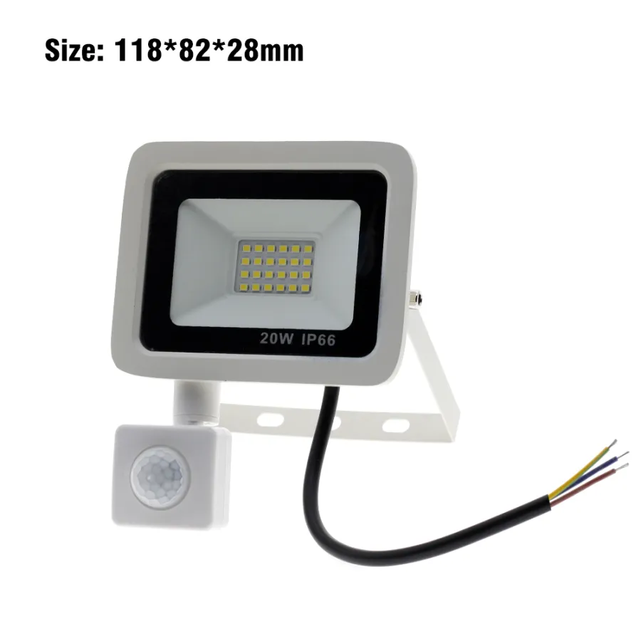 LED Floodlight PIR Motion Sensor White IP66 AC220V Exterior Projector Spotlight SMD2835 Outdoor Lighting Floor Lamp
