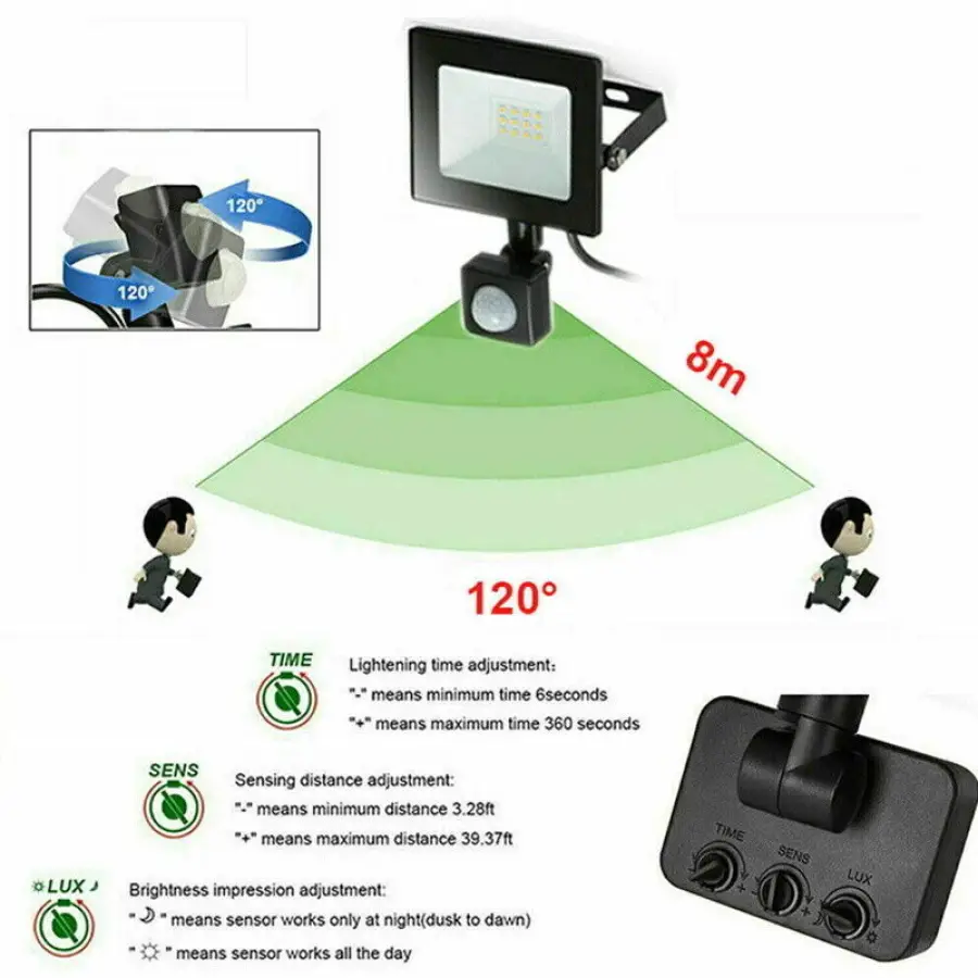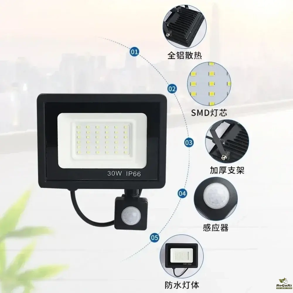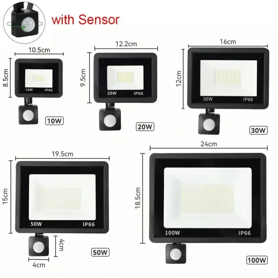 LED PIR Motion Sensor Floodlight Outdoor Wall Light White Light 100W 50W 30W 20W 10W IP66 Waterproof LED Spotlight For Garden