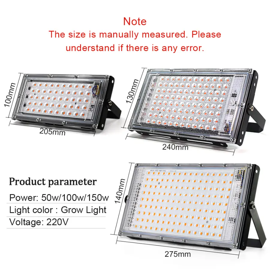 LED Grow Light 50W 100W 150W AC 220V Phyto Lamp Full Spectrum LED Floodlight Indoor Plants Hydroponic Greenhouse Growth Lighting