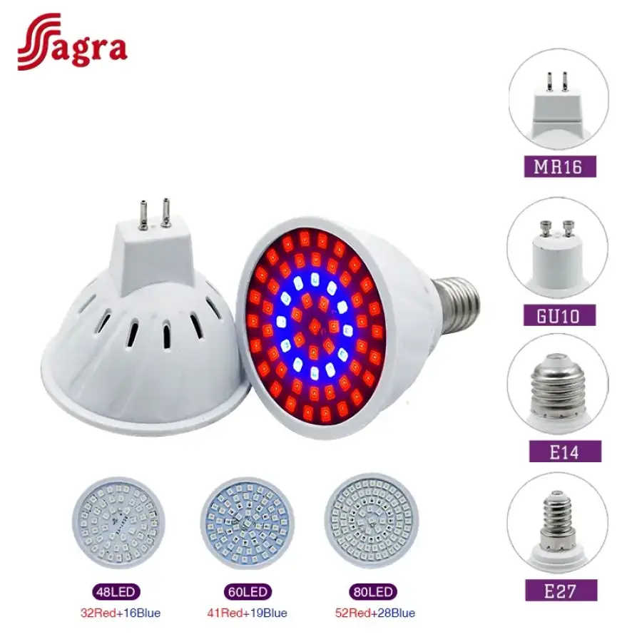 E27/E26 LED Grow Light Bulb Full Spectrum GU10 Spotlights MR16 Hydroponics Flower Vegetable Cultivation Plant Lamp E14 B22 GU5.3