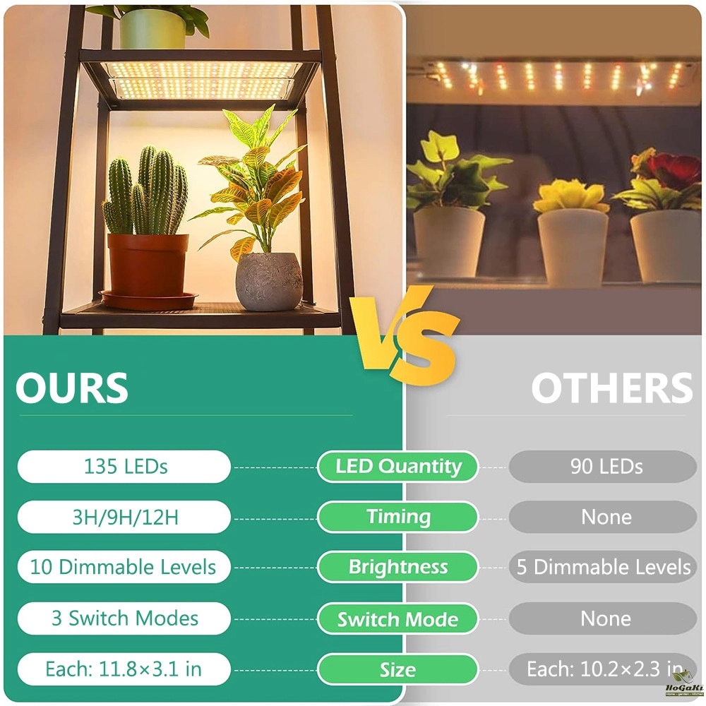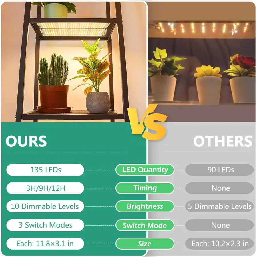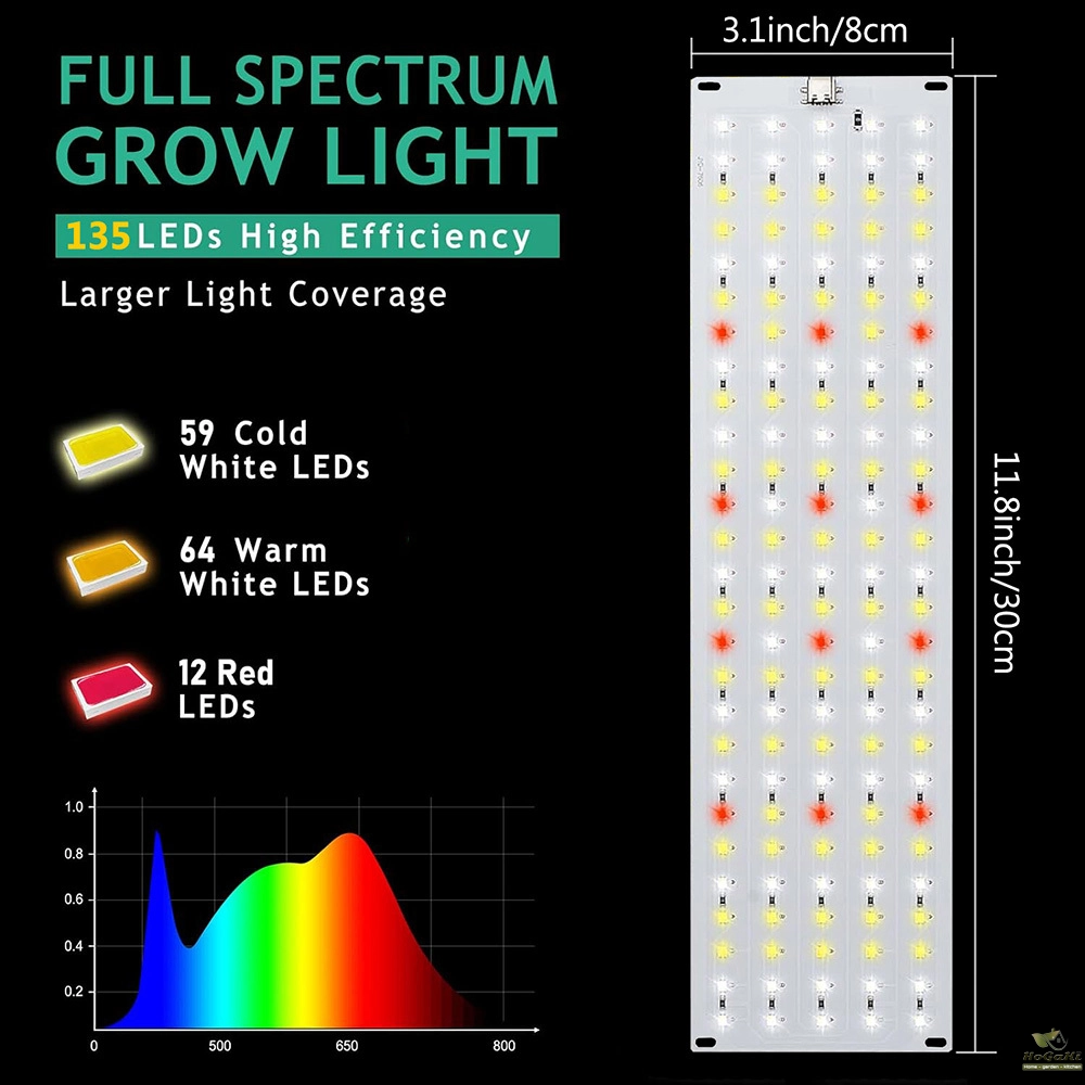 Full Spectrum Bright Grow Lamp: There are 135 LEDs on each grow light that emits all wavelengths from 380 nm to 780 nm, similar to natural light, with a higher PAR output, and provides uniform light to your plants. They are suitable for all plants at all growth stages, such as herbs, succulents, orchids, and more. Help your plants thrive year-round.