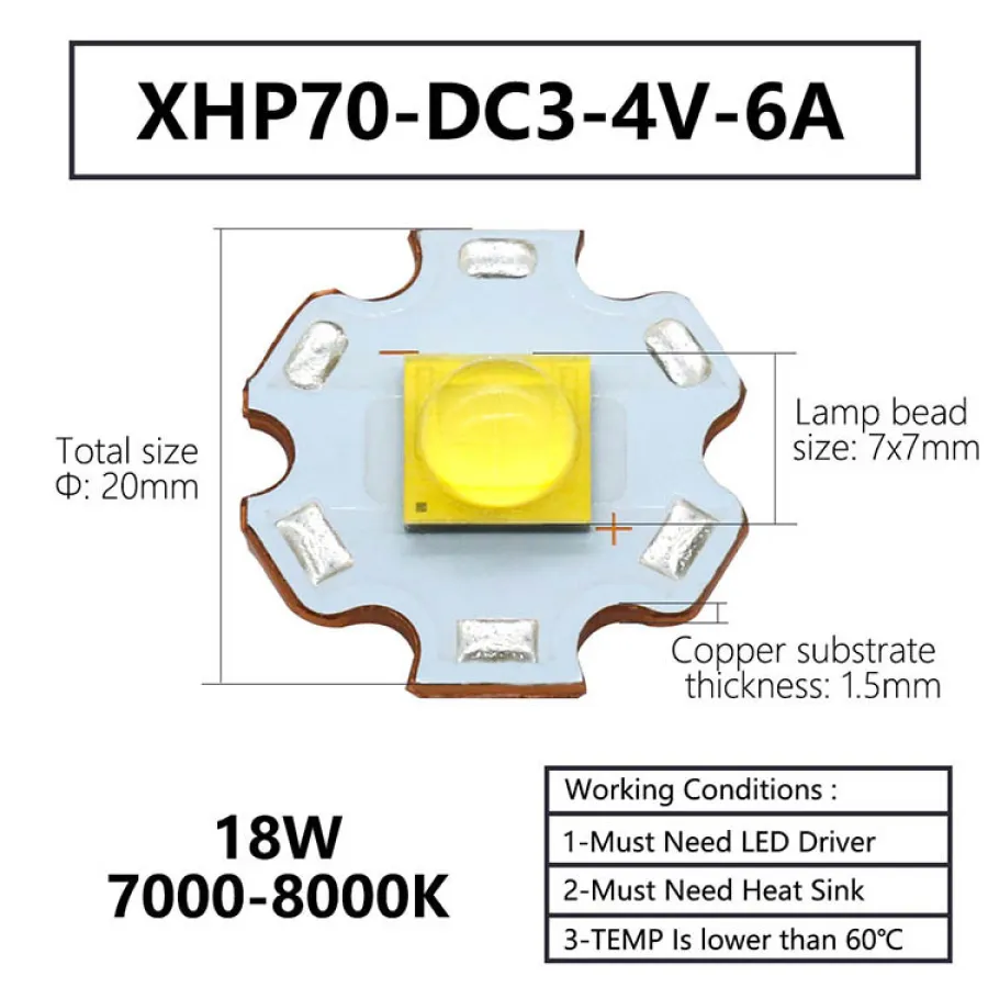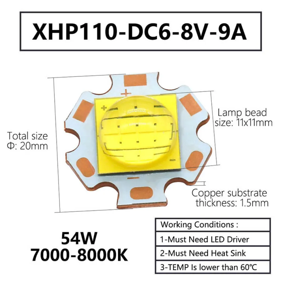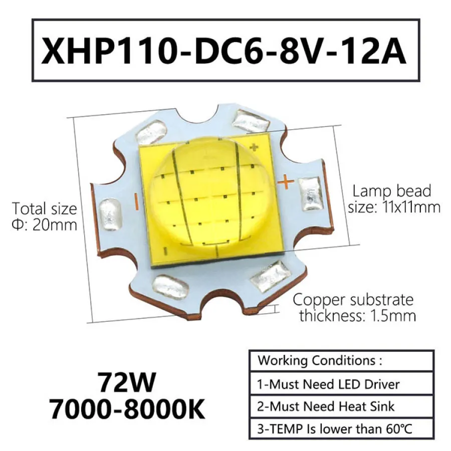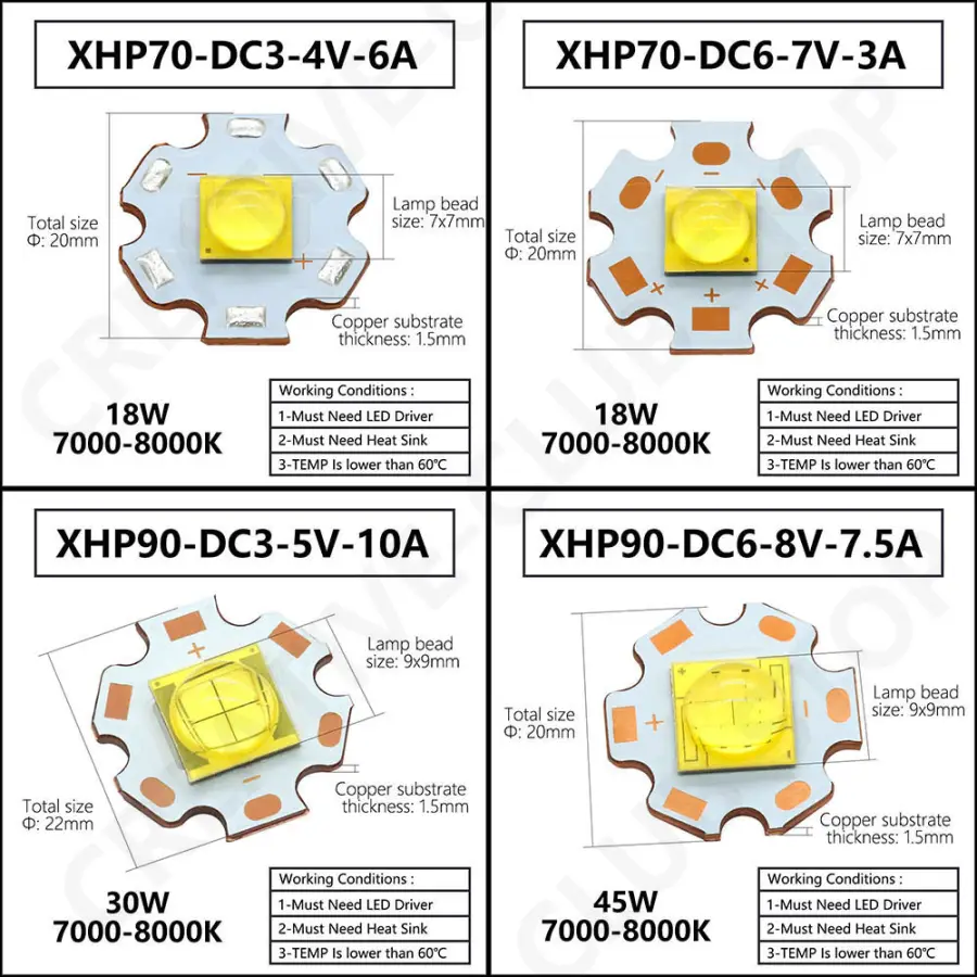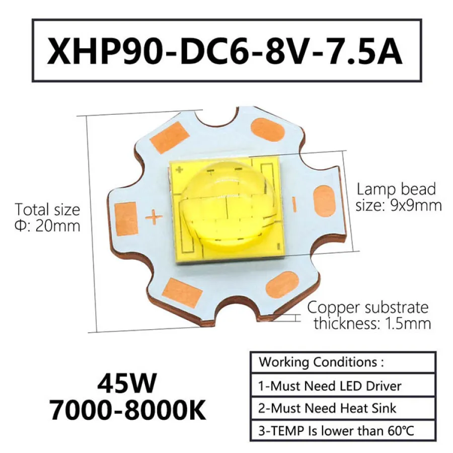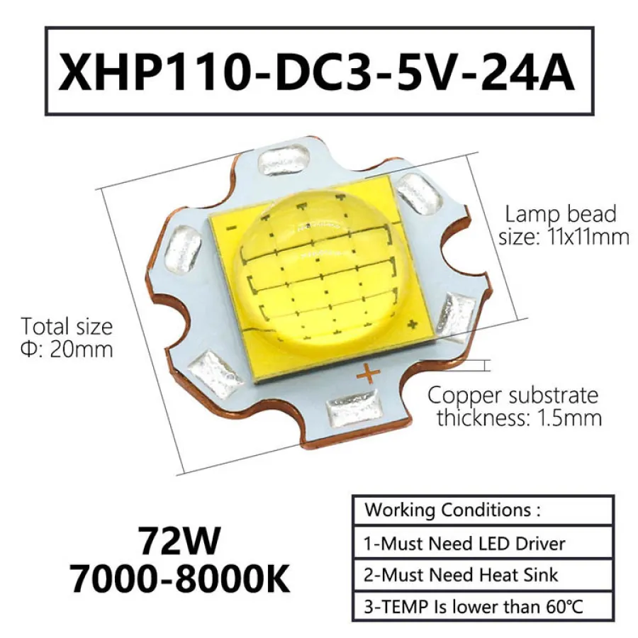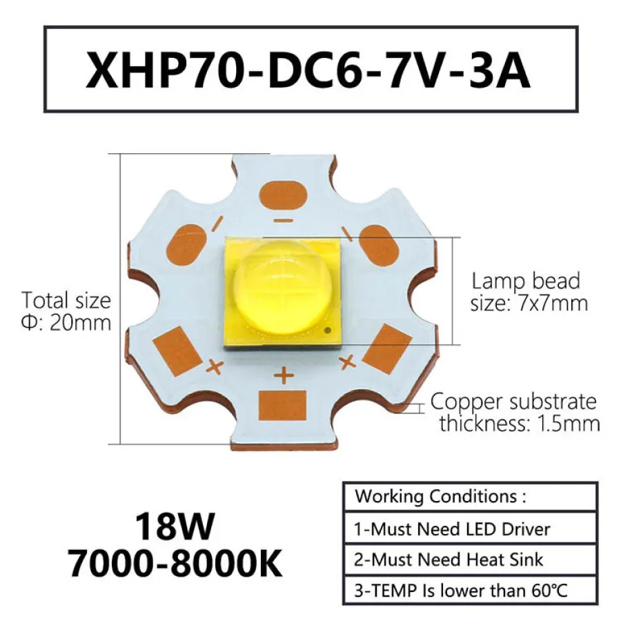 Lamp bead size: 7x7mm