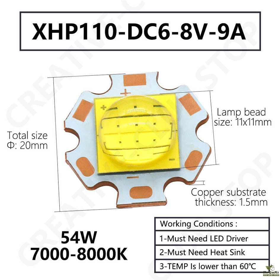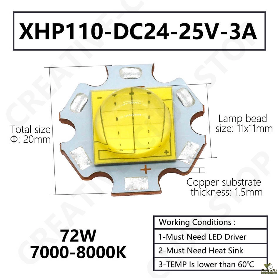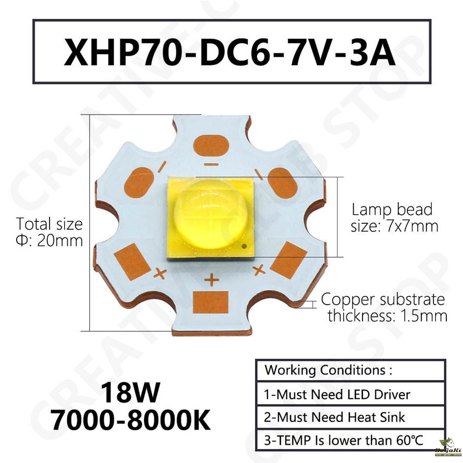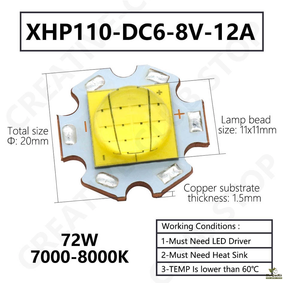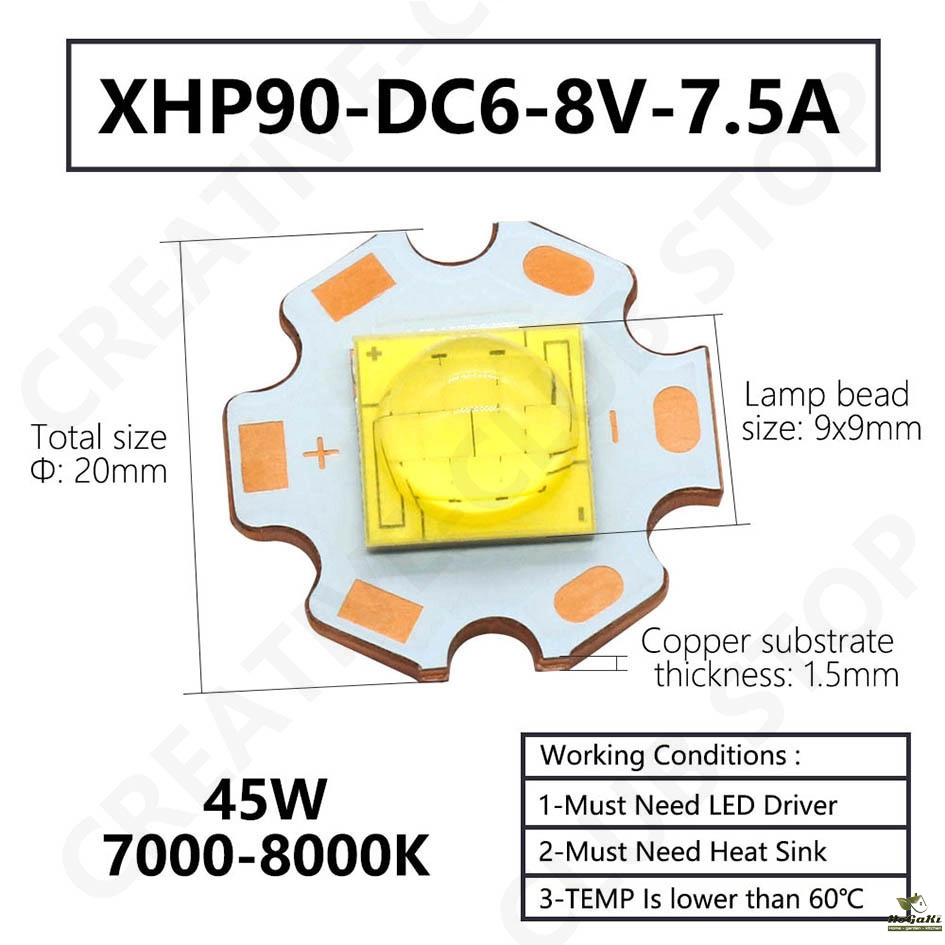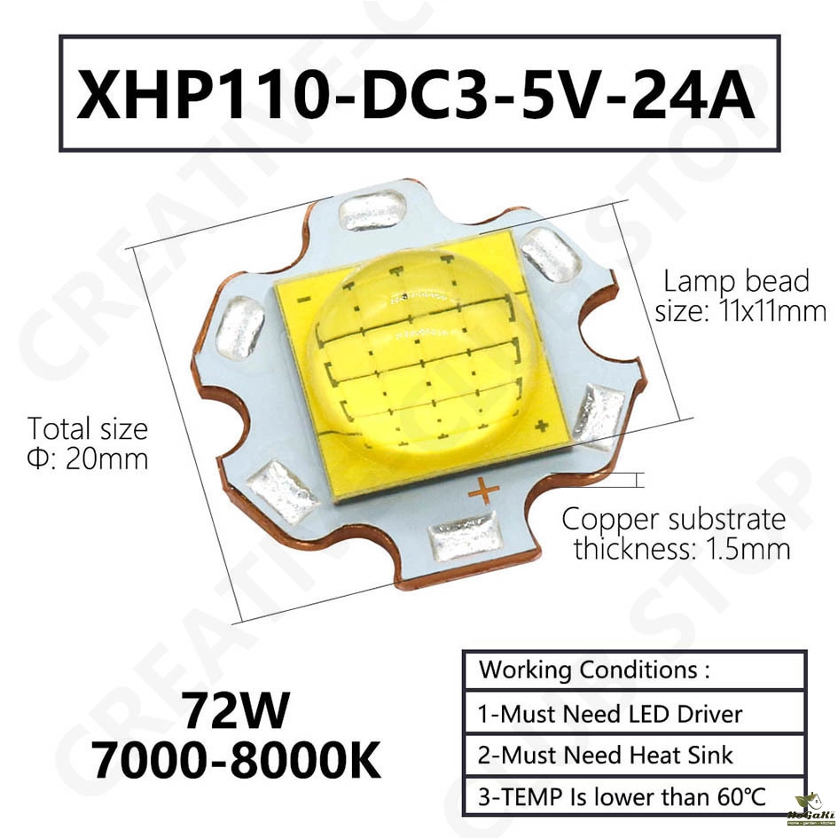 Lamp bead size: 7x7mm