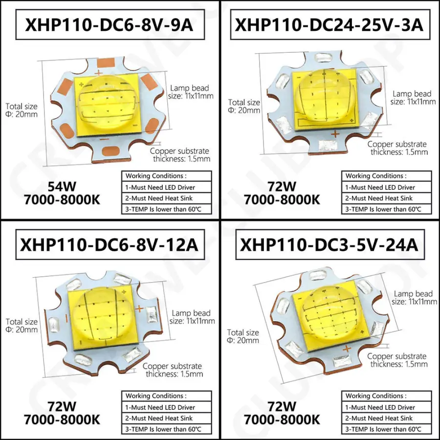 Lamp bead size: 11x11mm