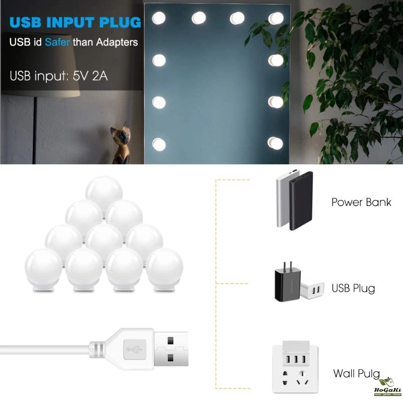Tips: The makeup mirror light bulb supports multiple modes of power supply, but they do not include batteries.