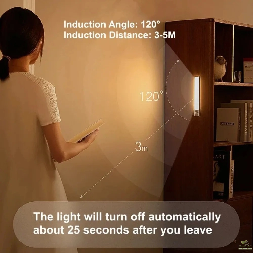 2. The install method is magnetic suction type. Tear off the adhesive on the back of the iron sheet and stick it on the wall or cabinet, and stick magnet strip onto the back of the lamp. The induction lamp can be sucked with the magnet and iron sheet.