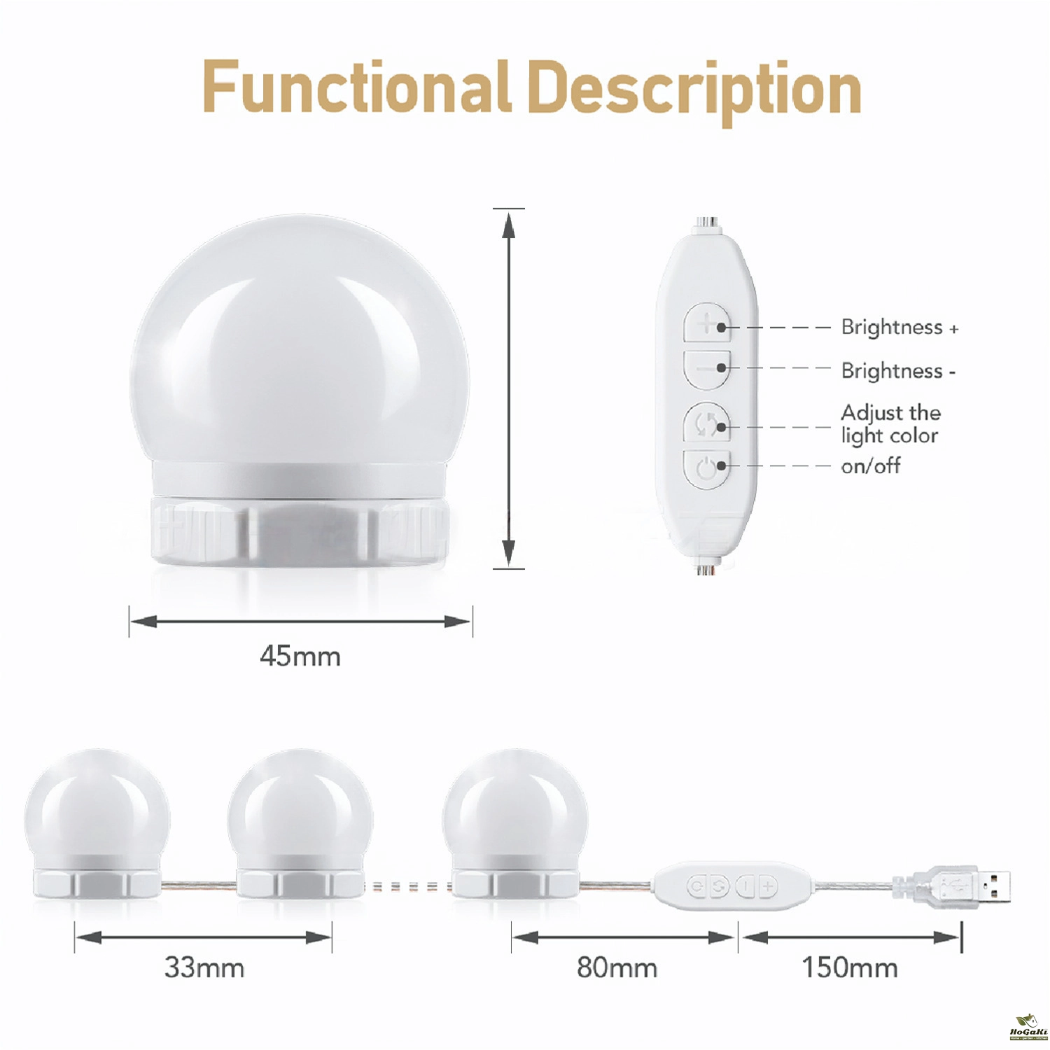 3.6 Level brightness dimmable,providing a professional color-correct lighting for make up.