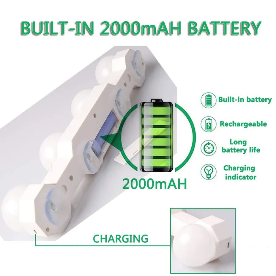LED Makeup Mirror Light Suction Cup Cordless Portable Bathroom Vanity Lamp USB Charged Cordless Dimmable Bedroom Nightlight