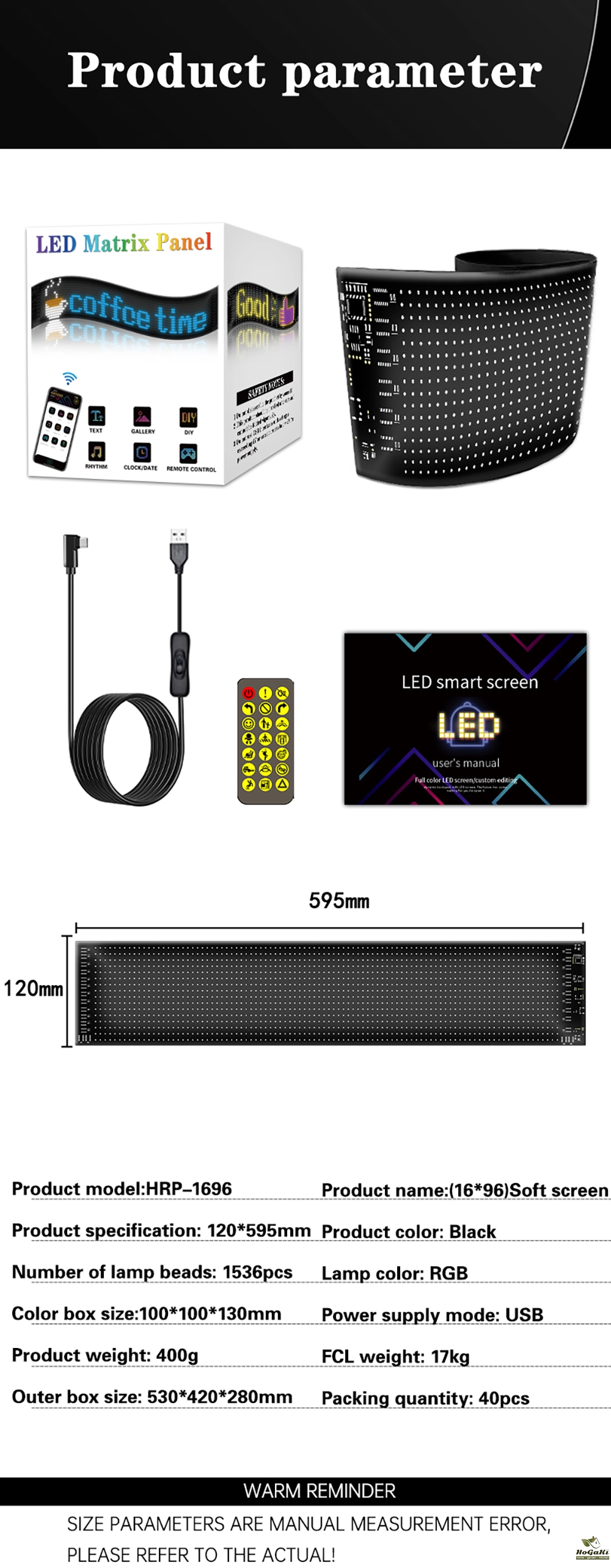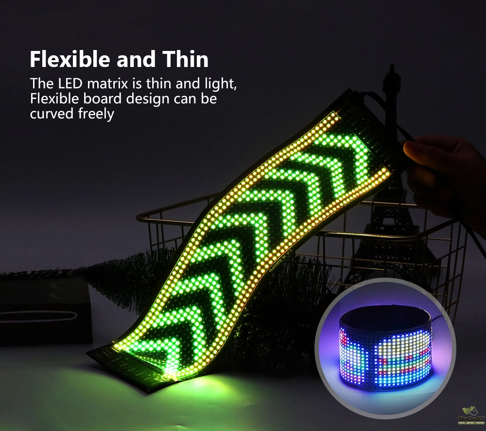 The LED matrix panel is light and thin,uses RGB lamp beads,Flexible board design,can be bent and folded at will