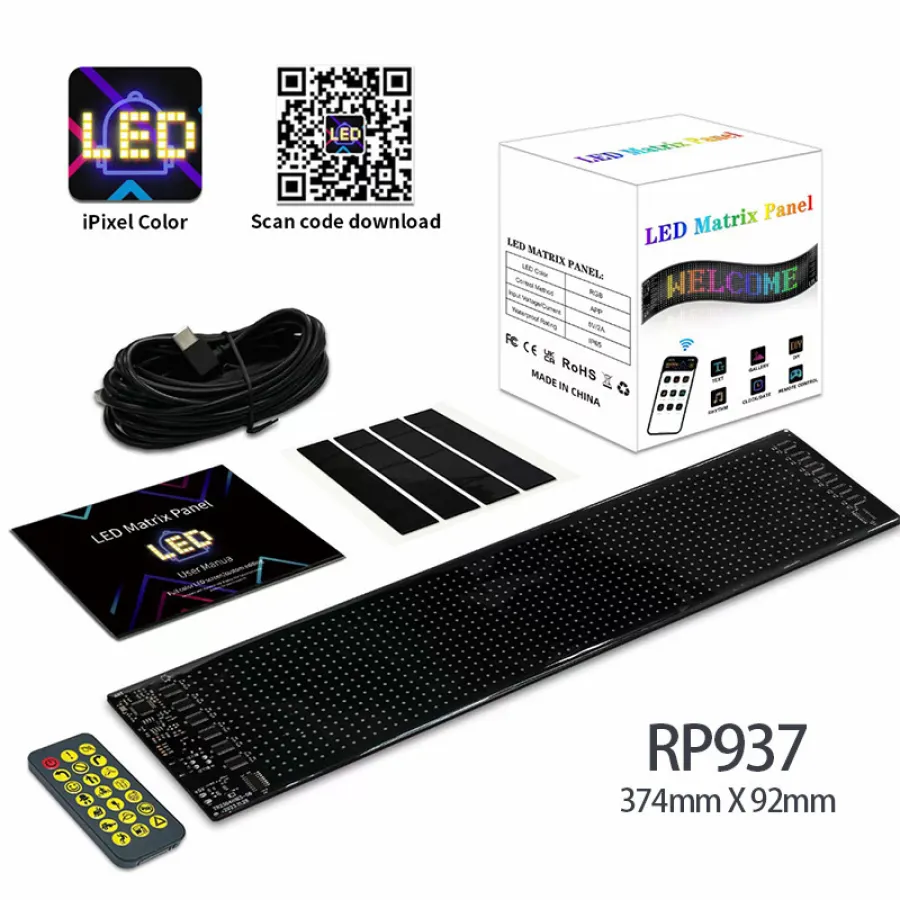 Features: Flexible and portable, with a lightweight panel and RGB light beads. The flexible board design allows for flexible bending and folding. The output content can be controlled by a remote control or APP phone, The app is equipped with many interesting modes and animations. Your phone can easily customize interesting patterns and text to personalize your scene.