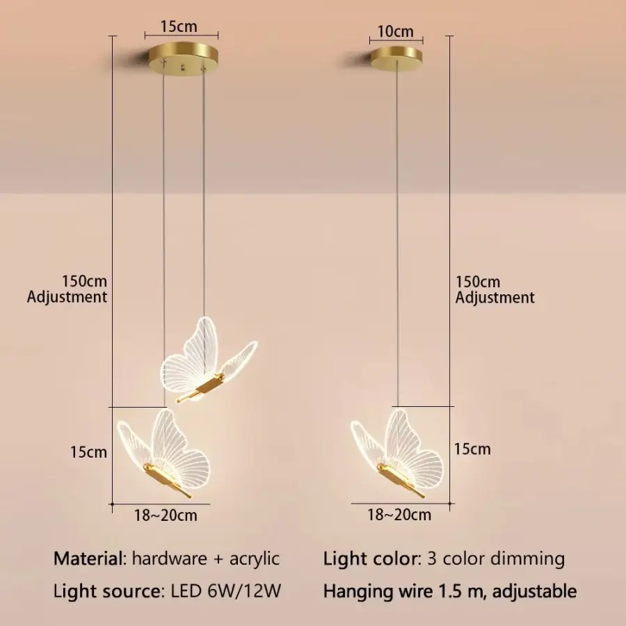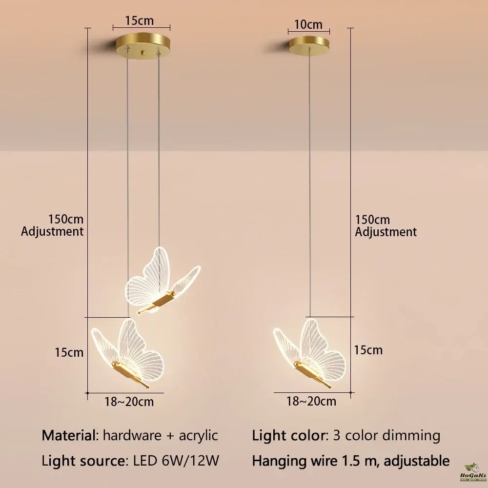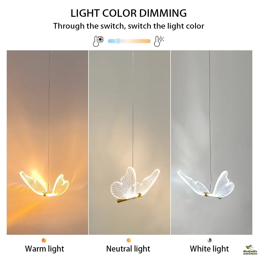 Butterfly LED pendant light Nordic ceiling pendant light, suitable for bedside indoor home, living room, dining room, kitchen decoration lighting
