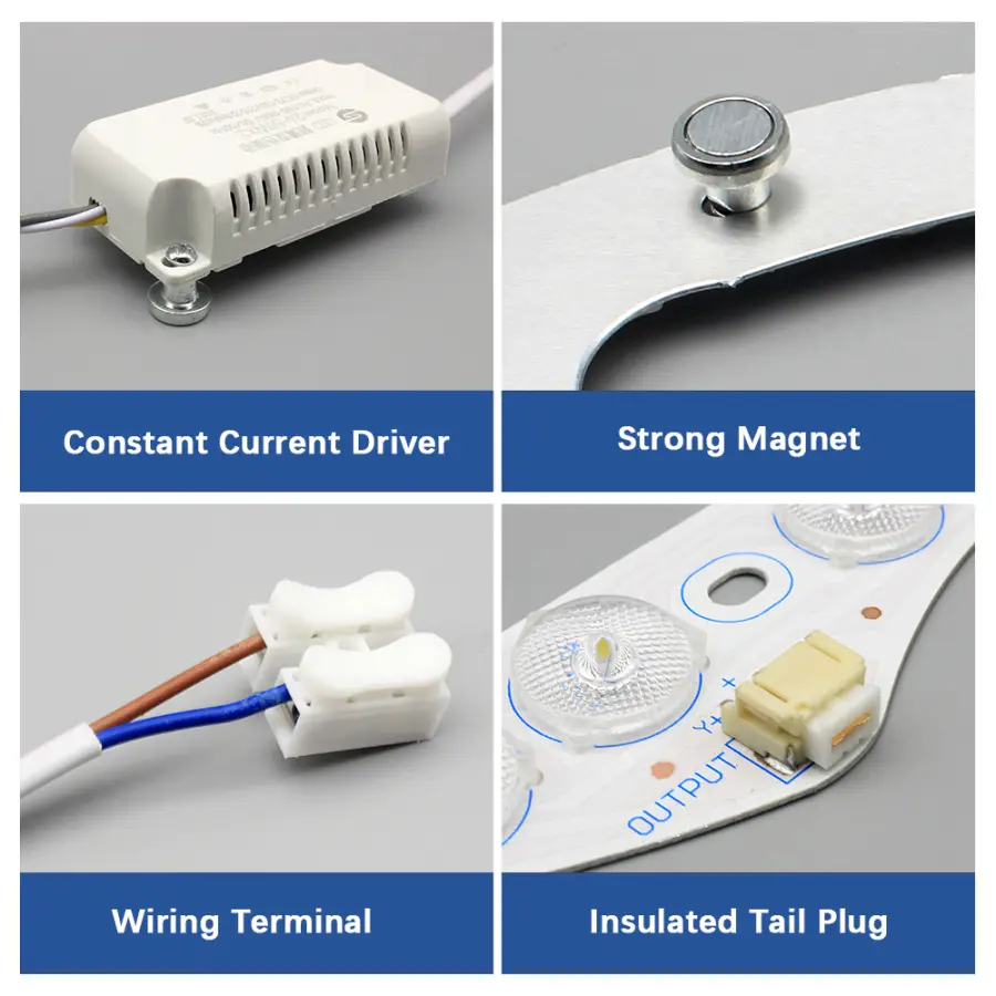 3. Magnet installation. Can be installed quickly, without the use of screws to install, to avoid damage to the ceiling lamp.Warm reminder.If the ceiling light in your home is not on,you do not need to replace the entire ceiling light.You can try ourLEDpanel module, which can quickly repair your ceiling light and make it light up again.Let it light up again. The seller recommends that this product can be used as a spare item in your home.