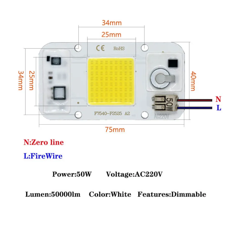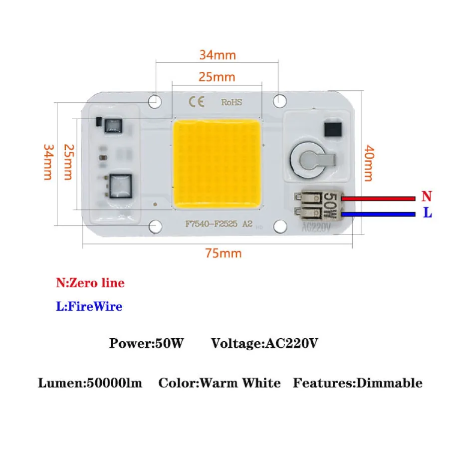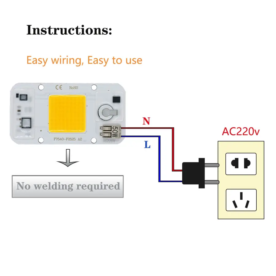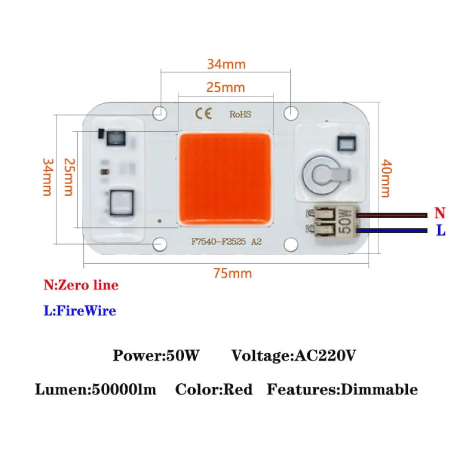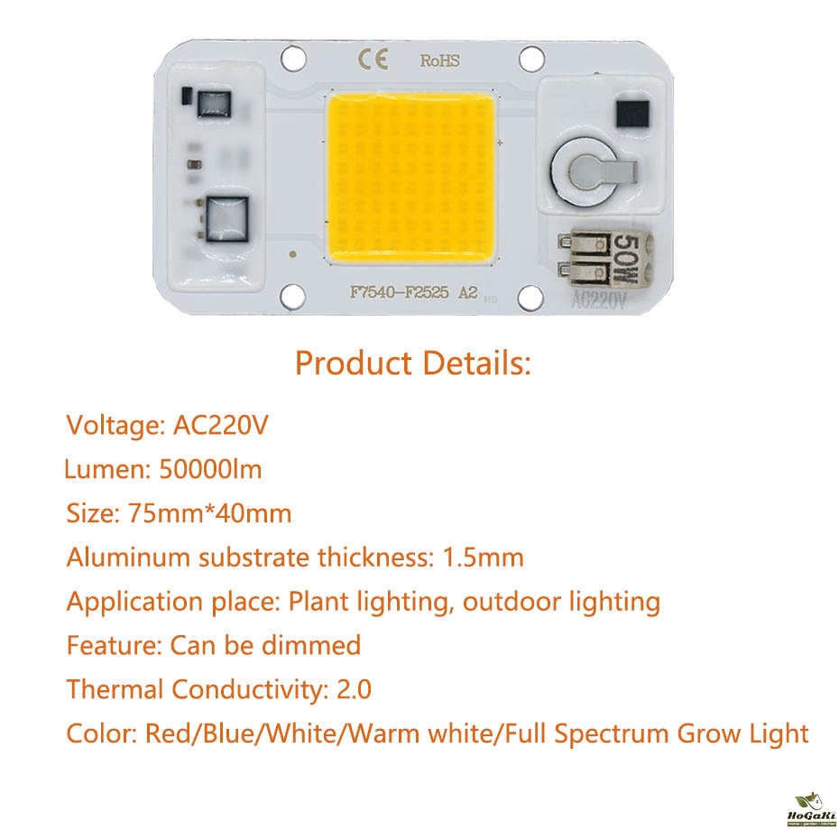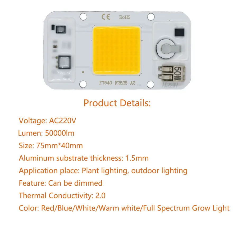 YXO Hydroponice AC 220V 20w 30w 50w Dob Cob LED Grow Light Chip Full Spectrum 380nm-780nm For Indoor Plant Seedling Grow Flower