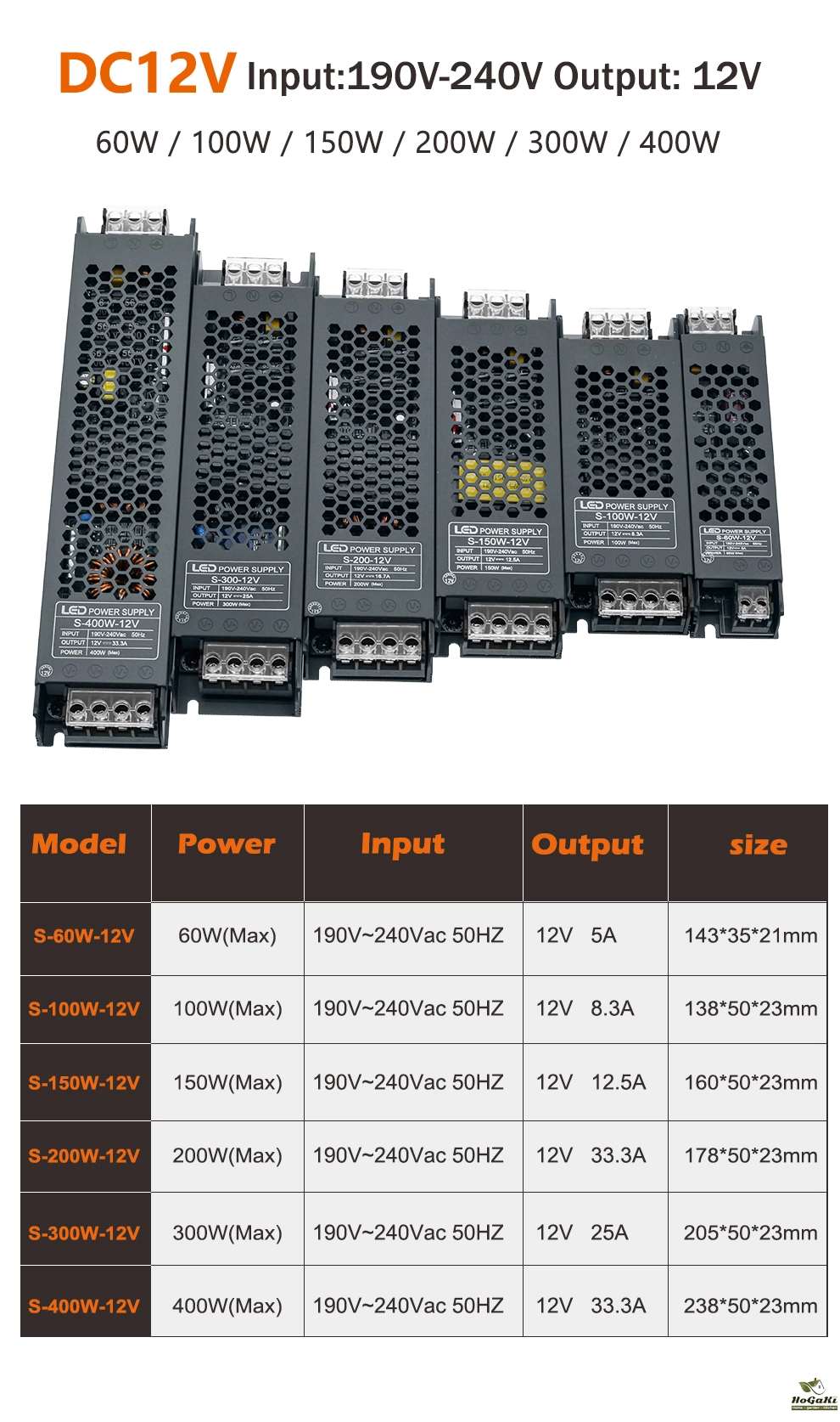 60W 100W 200W 300W 400W LED Light Driver Power Adapter