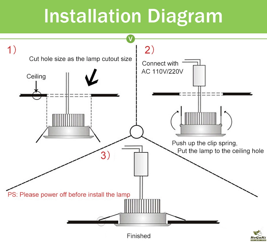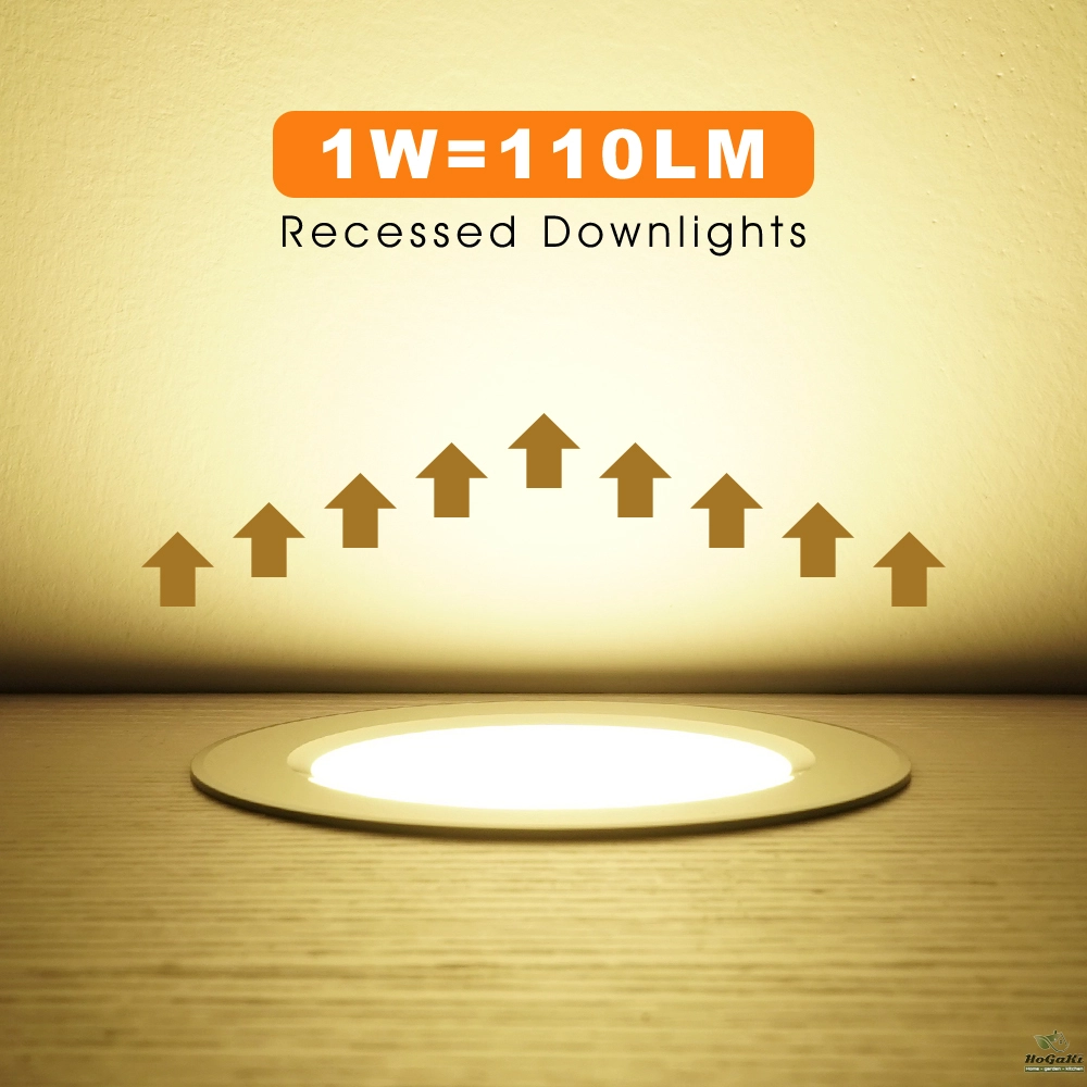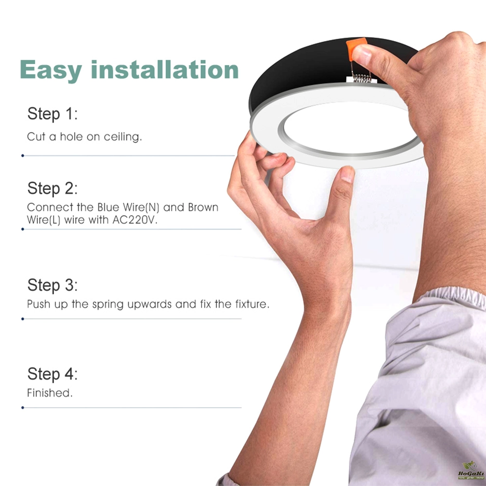 【Easy to Install】Low profile LED recessed lighting is suitable for retrofit and new applications: 1.Use 1:1 hole template to create a hole in the ceiling; 2.Connect the junction box to the cable; 3.Use the spring clip to affix to the ceiling. Complete installation takes just 5-10 minutes.