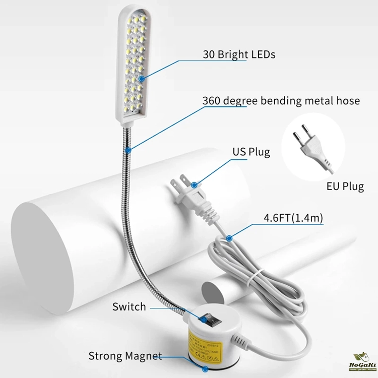 10/20/30 LED Sewing Machine Lamp 360 Flexible Adjustable Gooseneck Work Lamp Industrial Lights with Magnetic Base for Workbench Lathe Drill Press