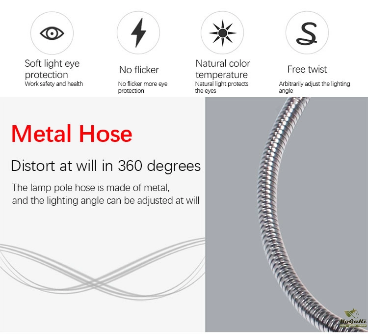 3.The flexible neck allows you to precisely adjust the light according to your needs. It is easy to set the light in the desired position.