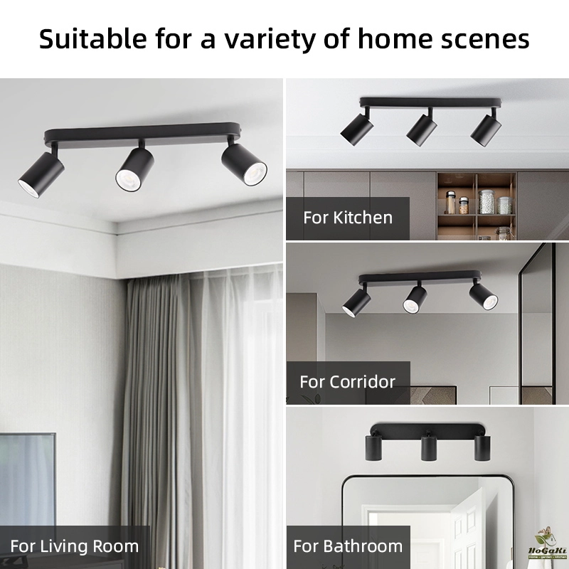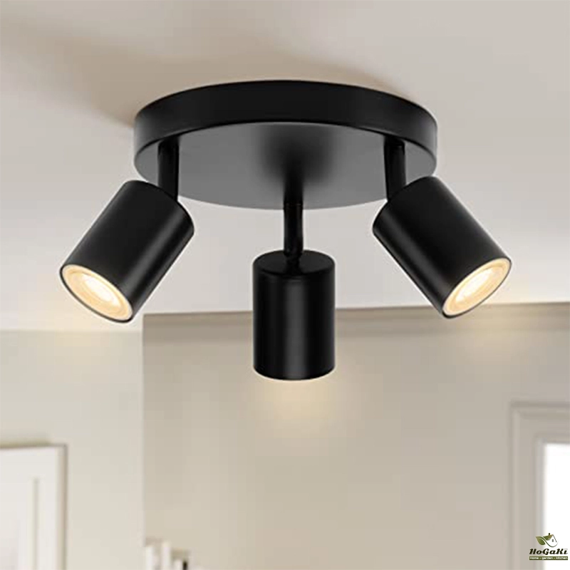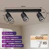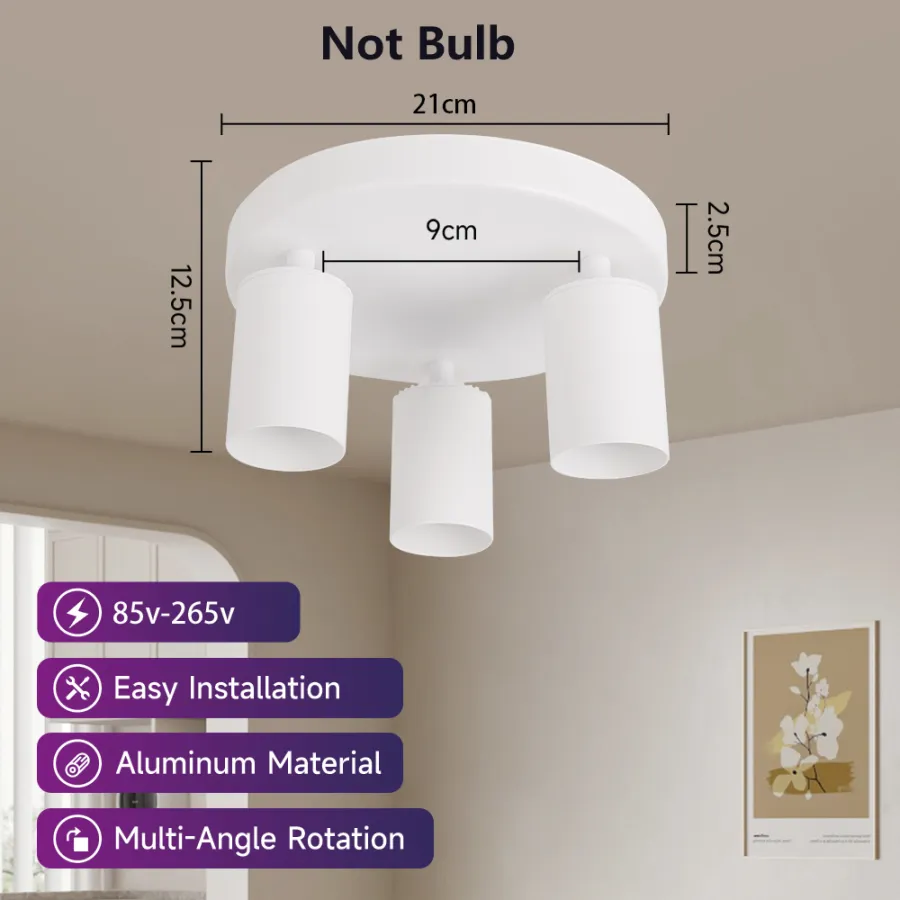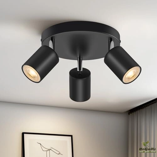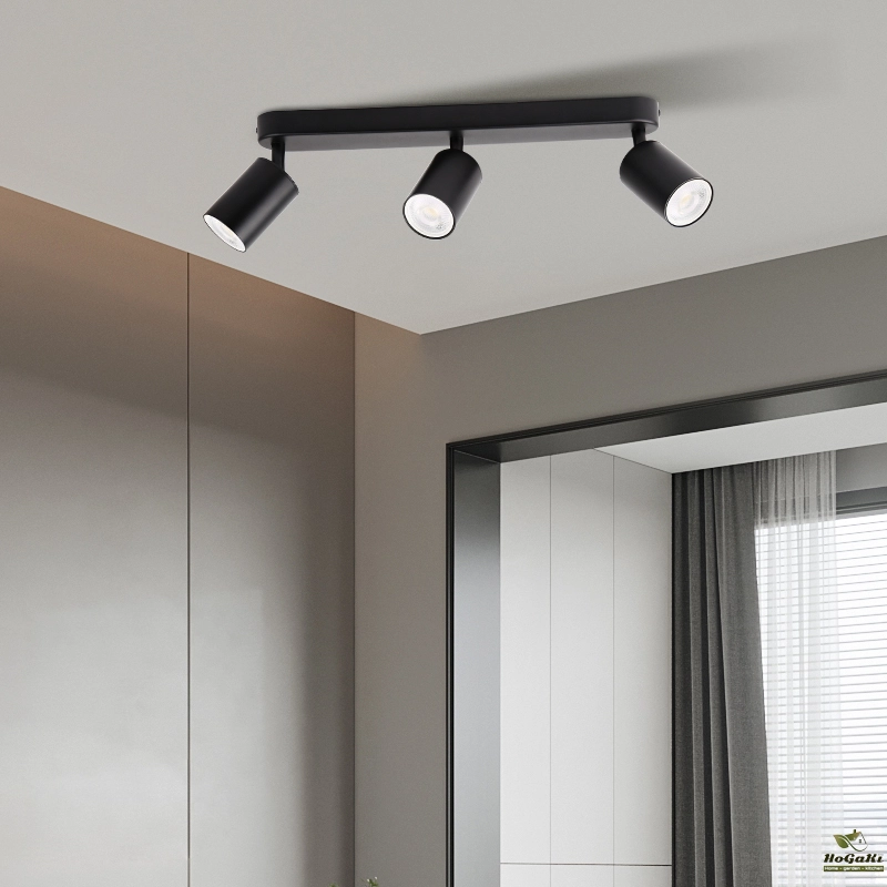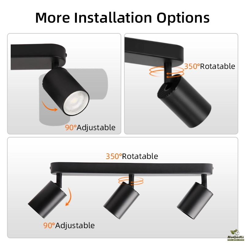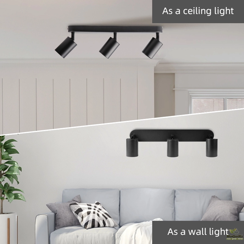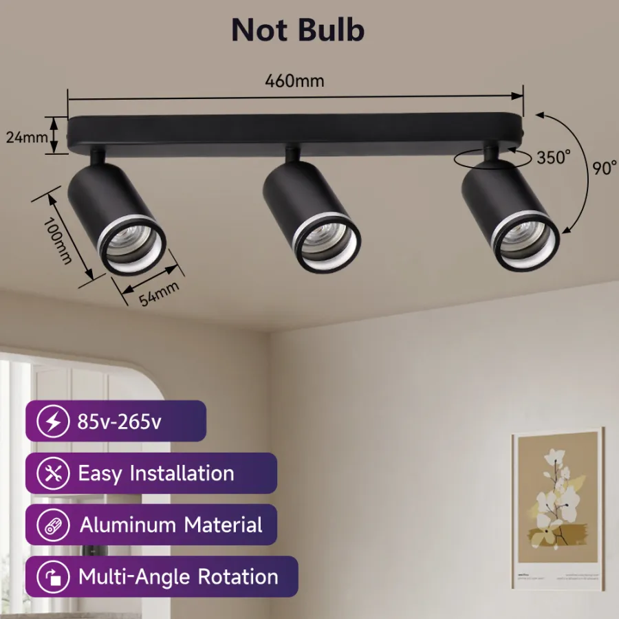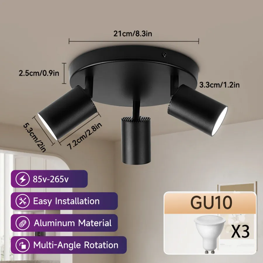 These three spotlights are directional and rotating. The three point LED ceiling spotlights can be tilted 90 ° and rotated 320 °, pointing in different directions to illuminate different areas of the room as needed. Ideal lighting for restaurants, bedrooms, or living rooms.