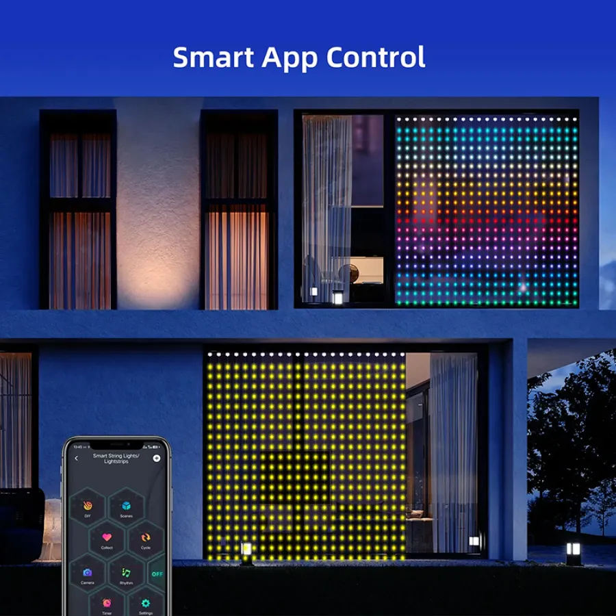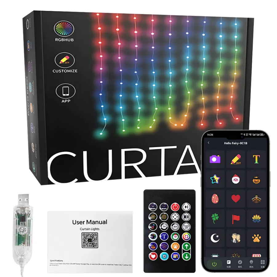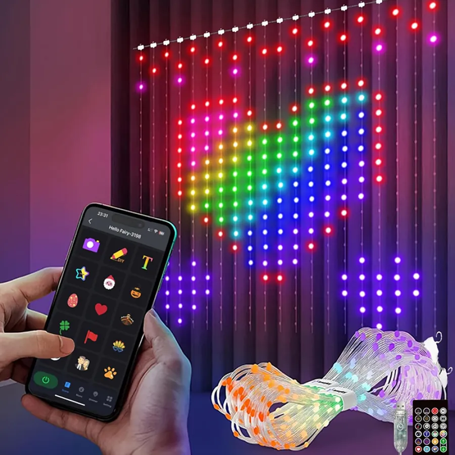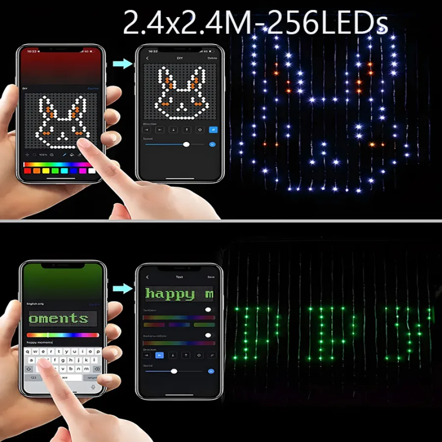 2. This product is a non-programmable style. When using the application control the product, it belongs to this category. After connecting the application, you need to enter the light string category interface to control the product. And during the DIY function, when light up an LED, the curtain light will light up a row of LEDs.