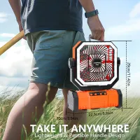 Bluetooth Camping Fan 20000mAh Rechargeable Battery Portable Wireless Fan Outdoor Hook Ceiling Electric Fan with Remote Control
