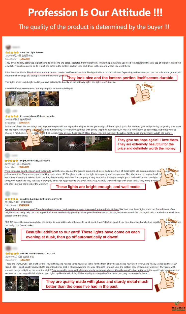 When using it for the first time, turn on the white waterproof button switch below the spherical light. Expose the solar panel to sunlight during the day for charging, and it will automatically light up at night. Charge in sunlight for 6-8 hours, and the lamp body can light up for 8-10 hours.