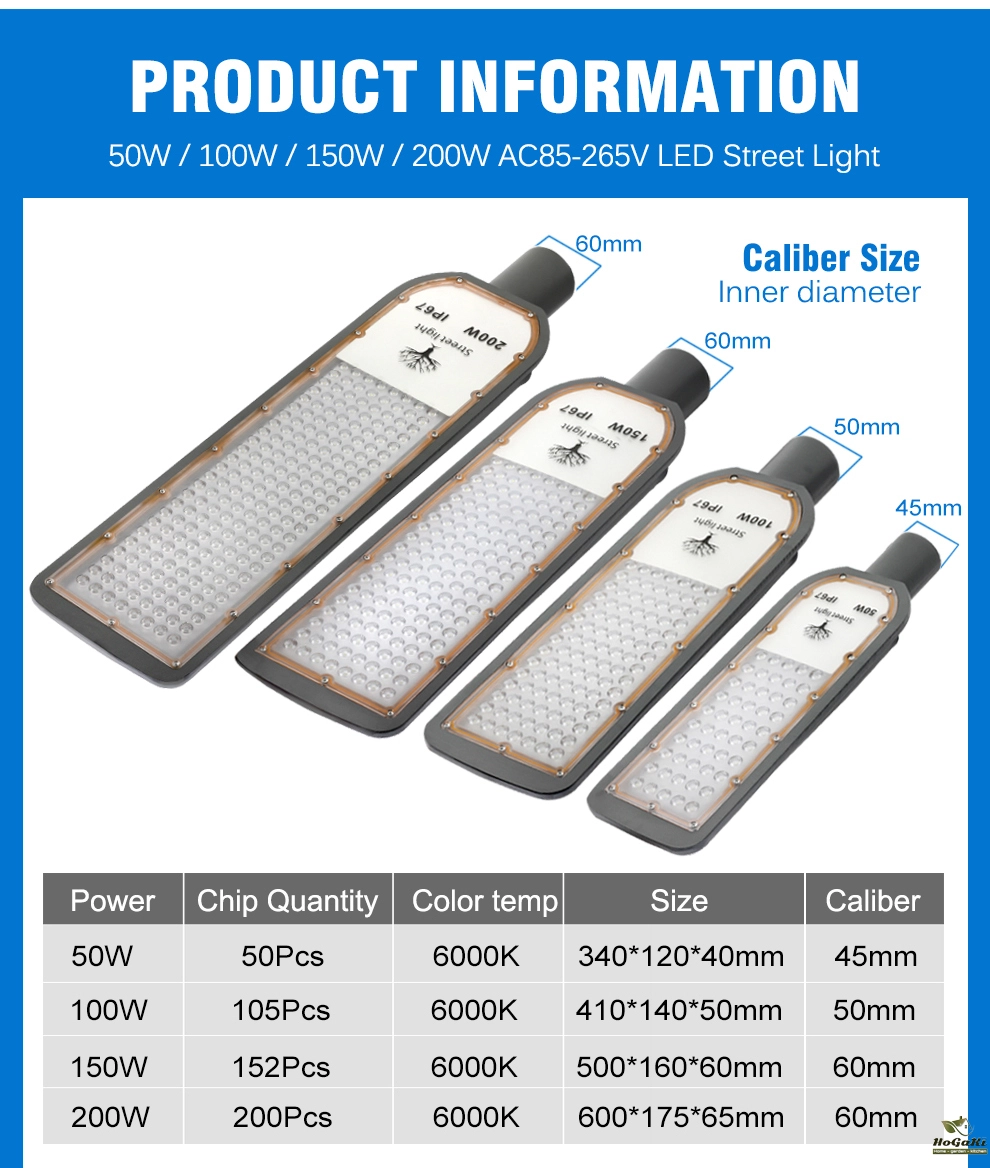 LED Street Light AC85-265V High Brightness 50W 100W 150W 200W 6000K SMD3030 Outdoor Light IP67 Waterproof