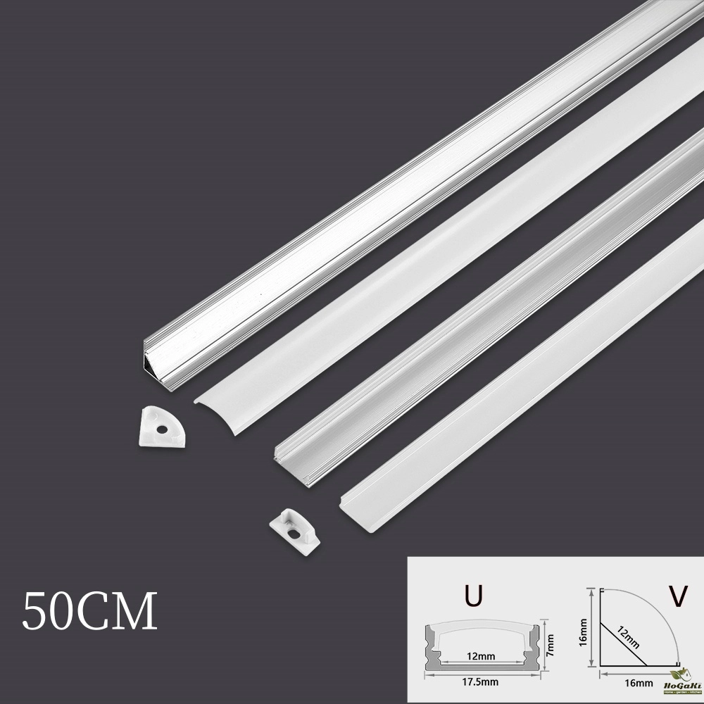 2-35Pcs/lot LED Aluminum profile 0.5m/pcs U/V/W shape Corner for 5050 2835 LED Strip Bar Lamp channel Holder White/Black Cover