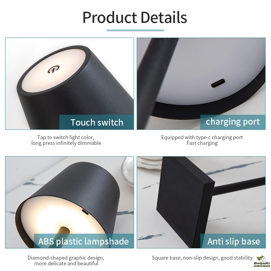 【High Capacity Battery Desk Lamp】 Built-in  rechargeable battery, secure Type-C charging port (comes with a charging cable), takes 5-6 hours to fully charge.Wireless convenience, energy saving and environmental protection, long use time, suitable for placing anywhere.