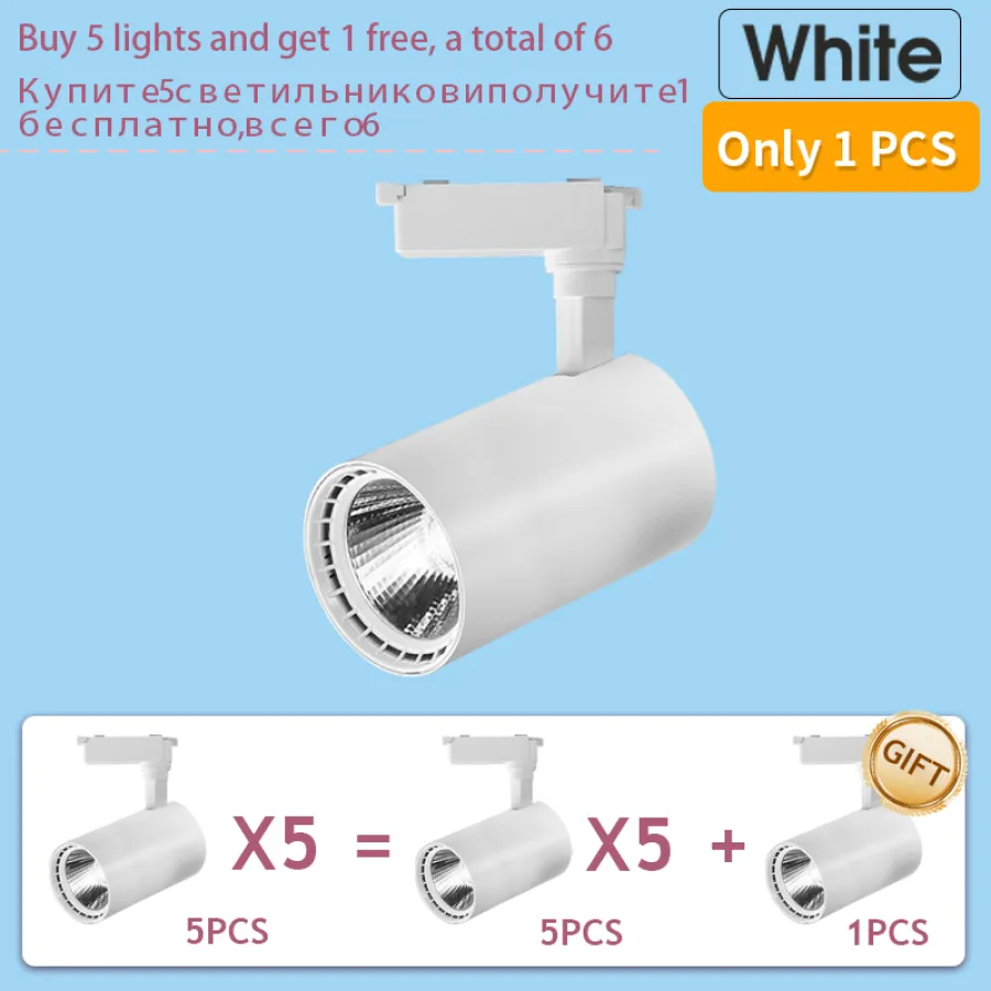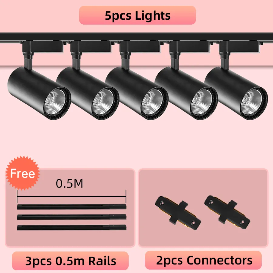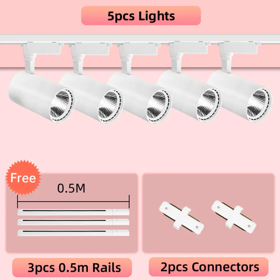 5pcs White/Black Body 1set: 5 lights+3pcs 0.5m rails+2pcs connectors