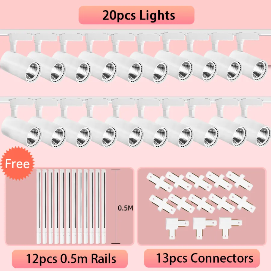 20pcs White/Black Body 1set: 20 lights+12pcs 0.5m rails+13pcs connectors