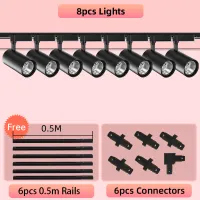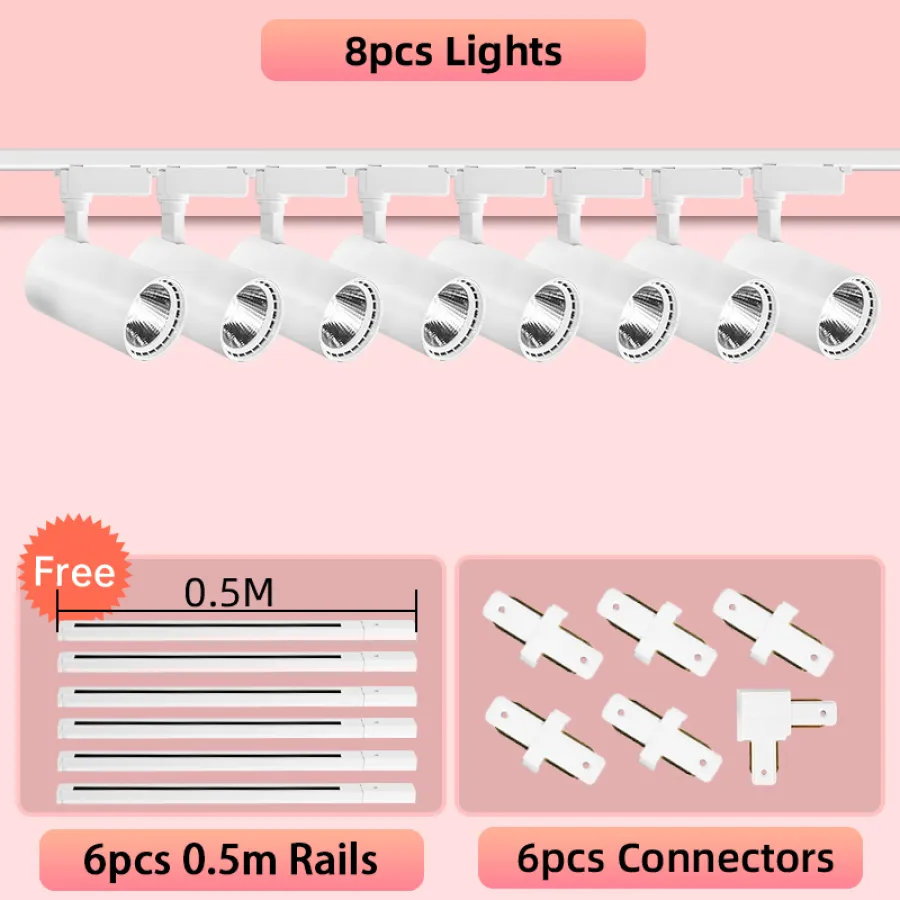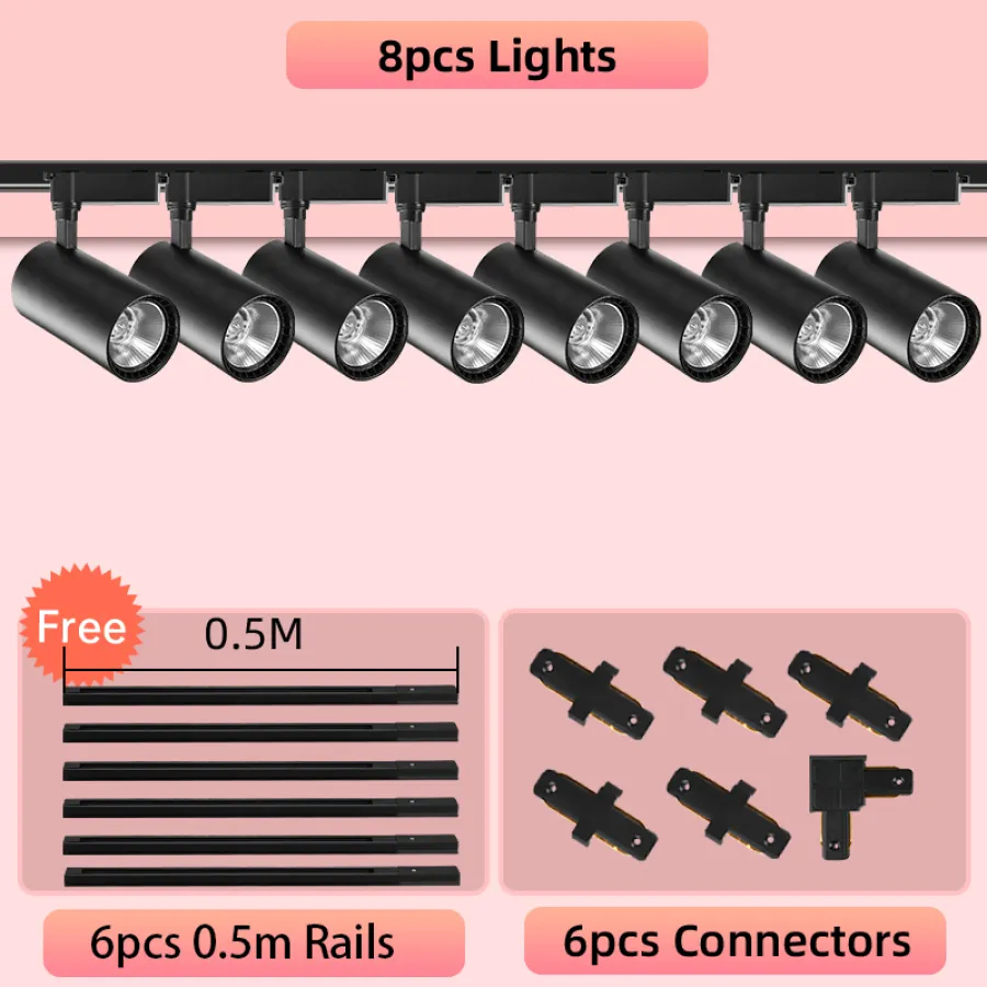 8pcs White/Black Body 1set: 8 lights+6pcs 0.5m rails+6pcs connectors