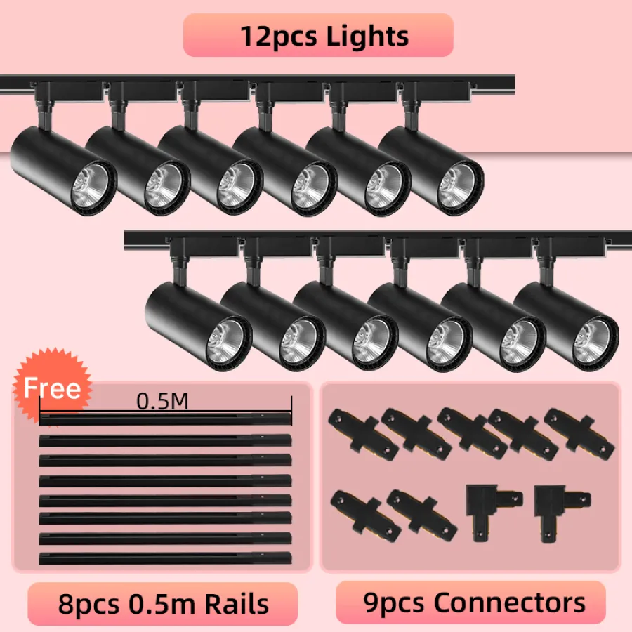 12pcs White/Black Body 1set: 12 lights+8pcs 0.5m rails+9pcs connectors